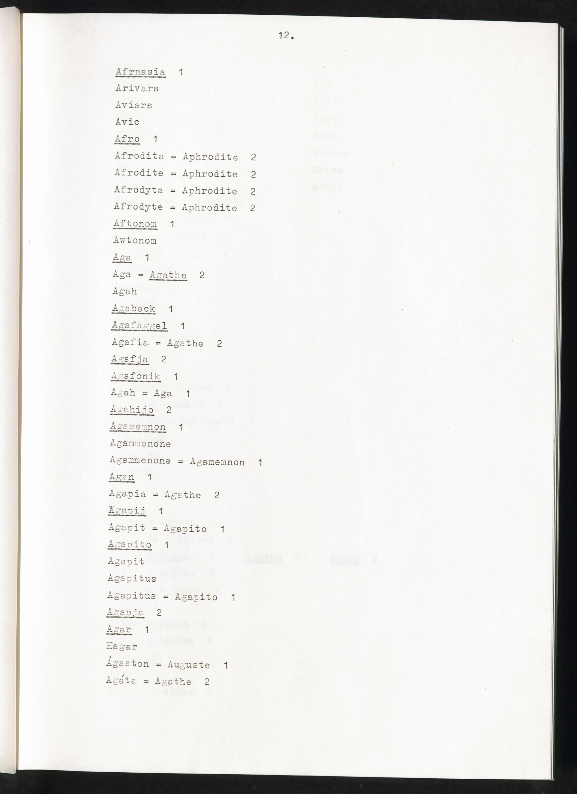 Band 1 (1974) Aufstellung der Vornamen, A - JBand 1 (1974) Liste des prenoms, A - JBand 1 (1974) List of first names, A - J