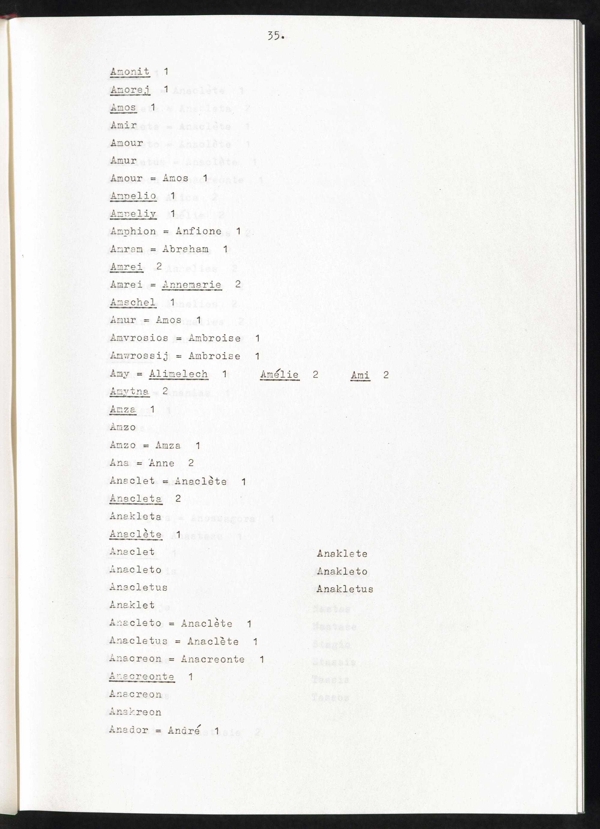 Band 1 (1974) Aufstellung der Vornamen, A - JBand 1 (1974) Liste des prenoms, A - JBand 1 (1974) List of first names, A - J