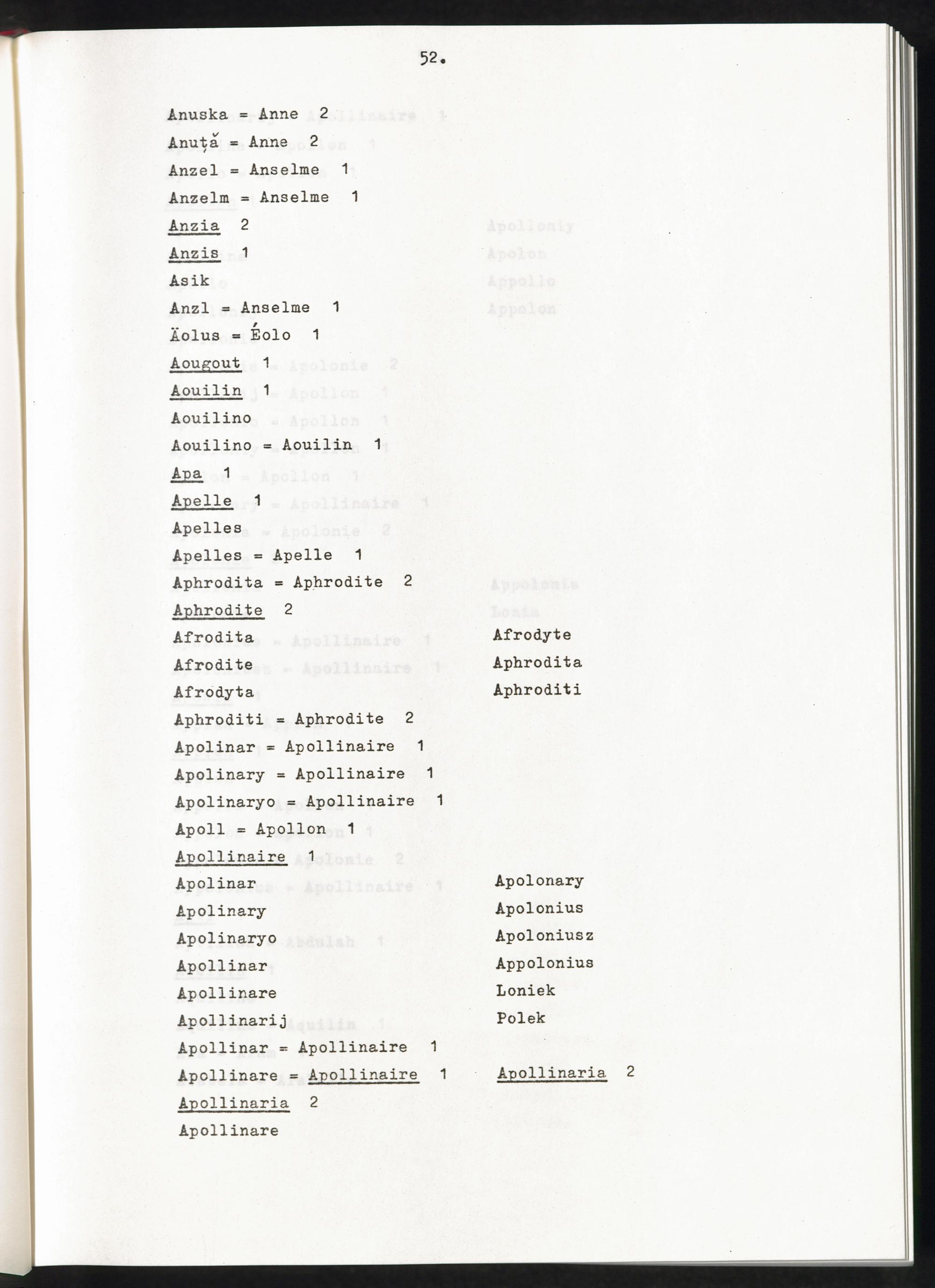 Band 1 (1974) Aufstellung der Vornamen, A - JBand 1 (1974) Liste des prenoms, A - JBand 1 (1974) List of first names, A - J