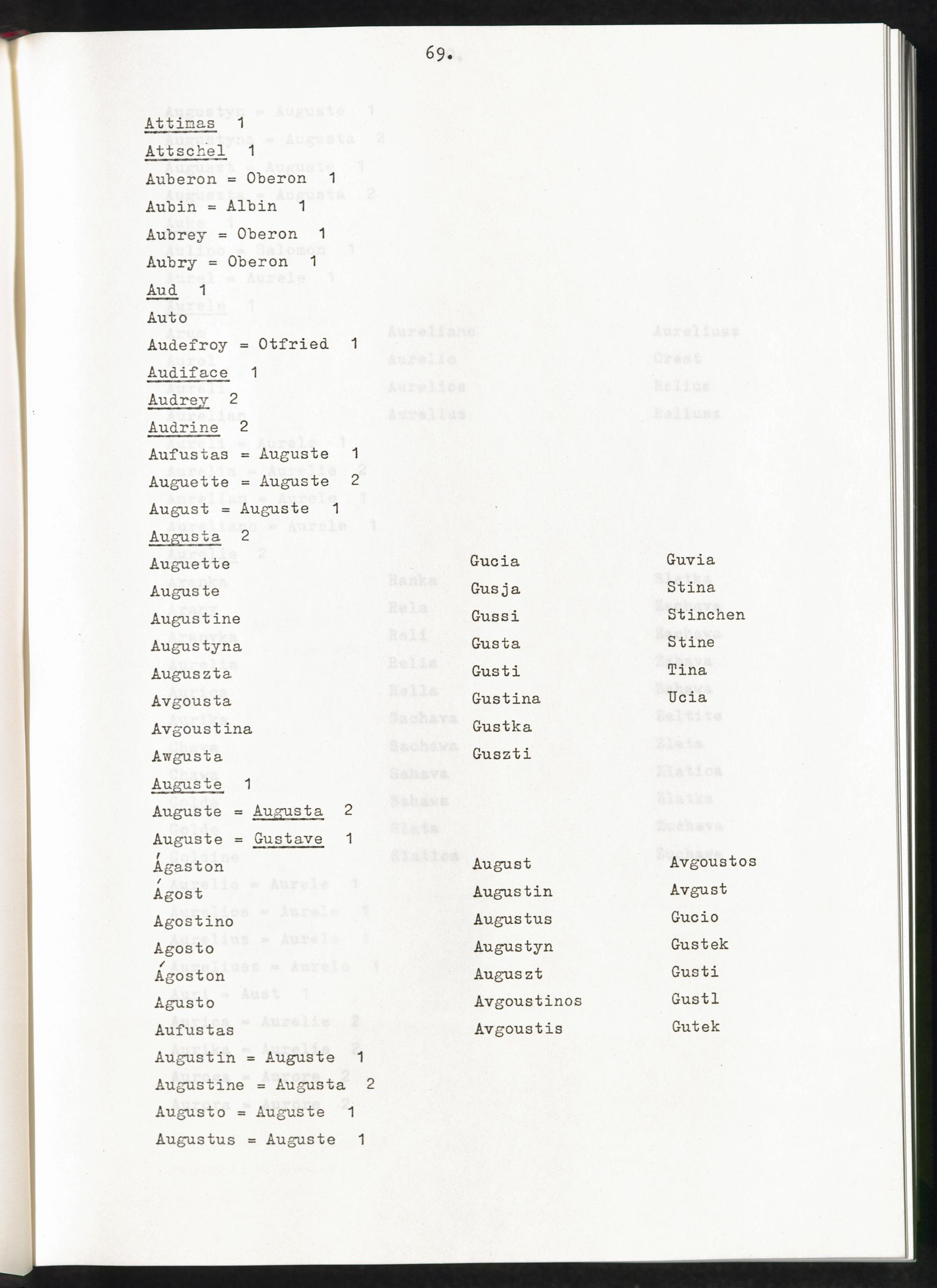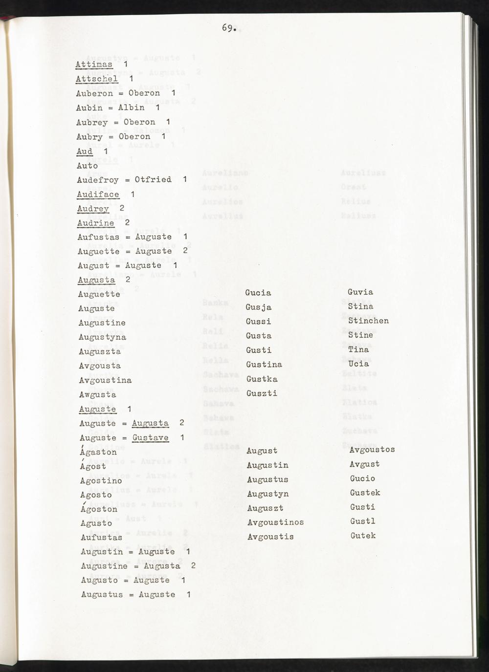 Band 1 (1974) Aufstellung der Vornamen, A - JBand 1 (1974) Liste des prenoms, A - JBand 1 (1974) List of first names, A - J