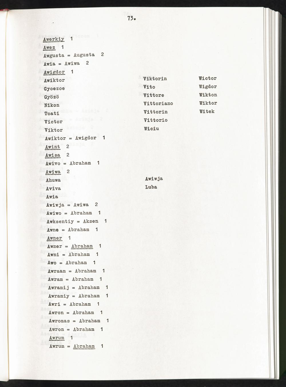 Band 1 (1974) Aufstellung der Vornamen, A - JBand 1 (1974) Liste des prenoms, A - JBand 1 (1974) List of first names, A - J