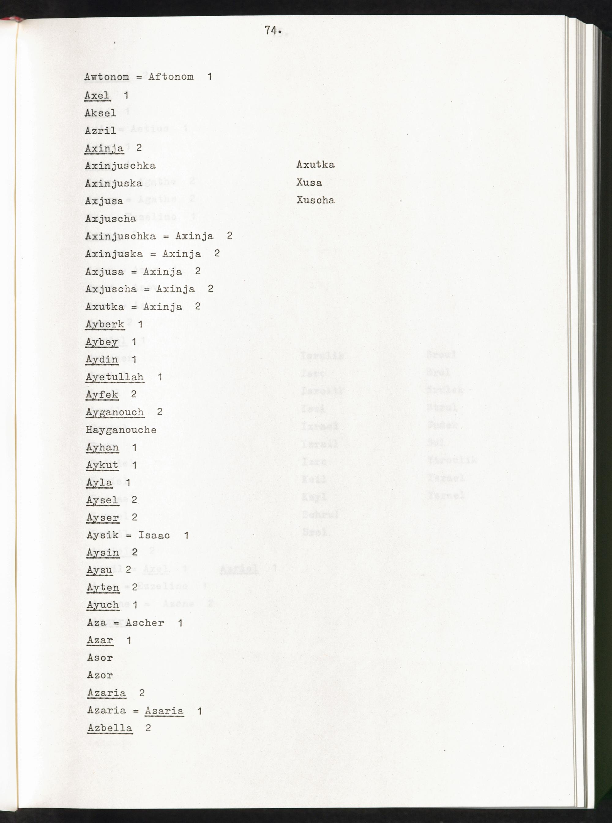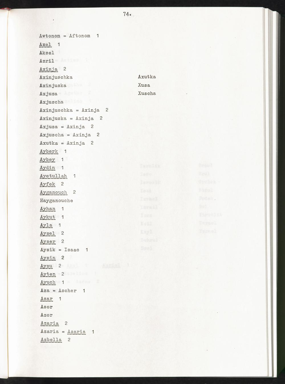 Band 1 (1974) Aufstellung der Vornamen, A - JBand 1 (1974) Liste des prenoms, A - JBand 1 (1974) List of first names, A - J