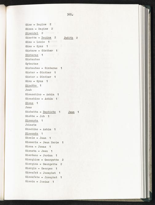 Band 1 (1974) Aufstellung der Vornamen, A - JBand 1 (1974) Liste des prenoms, A - JBand 1 (1974) List of first names, A - J