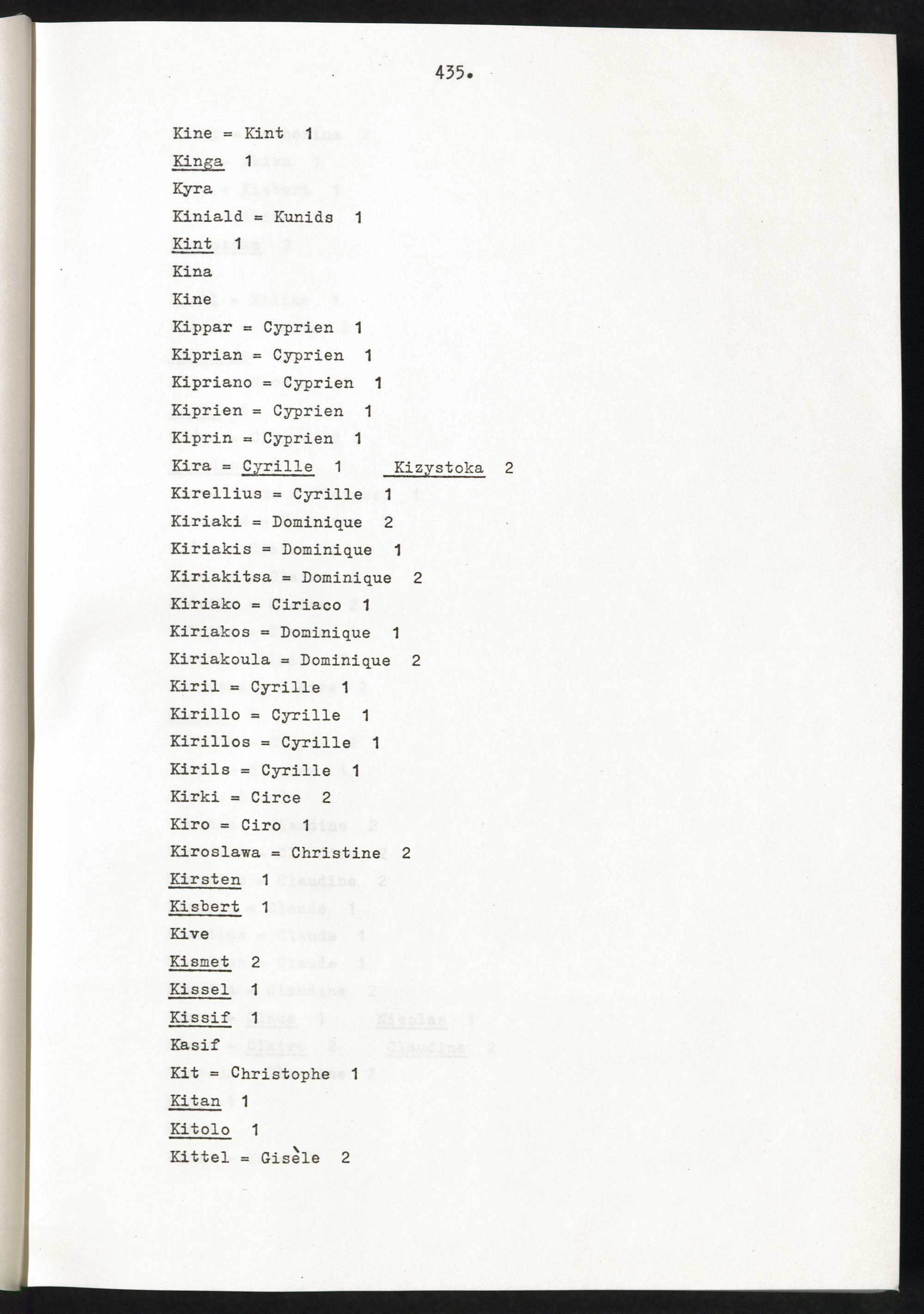 Band 2 (1974) Aufstellung der Vornamen, K - ZBand 2 (1974) Liste des prenoms K - ZBand 2 (1974) List of first names K - Z