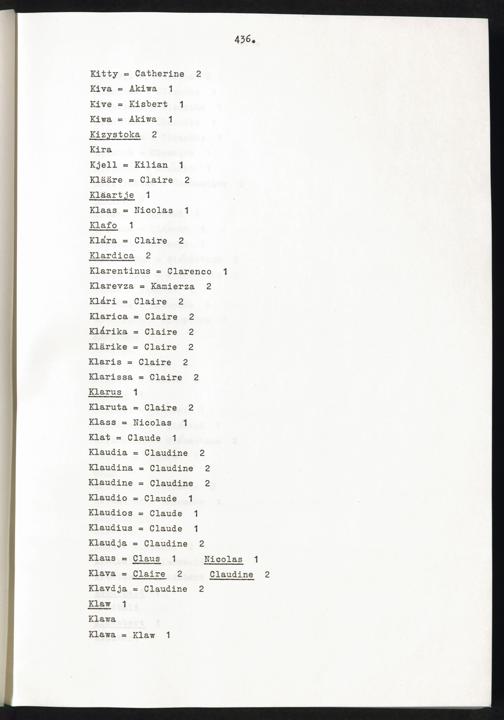 Band 2 (1974) Aufstellung der Vornamen, K - ZBand 2 (1974) Liste des prenoms K - ZBand 2 (1974) List of first names K - Z