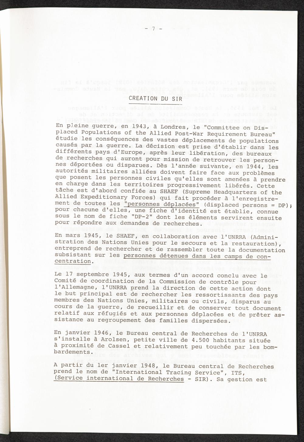 Le Service International De Recherches : Les archives des camps de concentration au service des survivants / Comité International de la Croix-Rouge