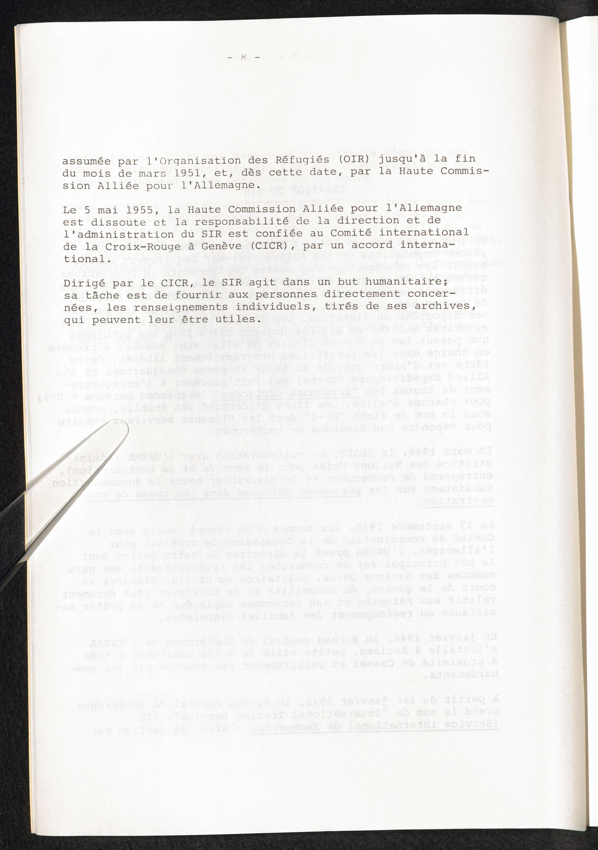Le Service International De Recherches : Les archives des camps de concentration au service des survivants / Comité International de la Croix-Rouge