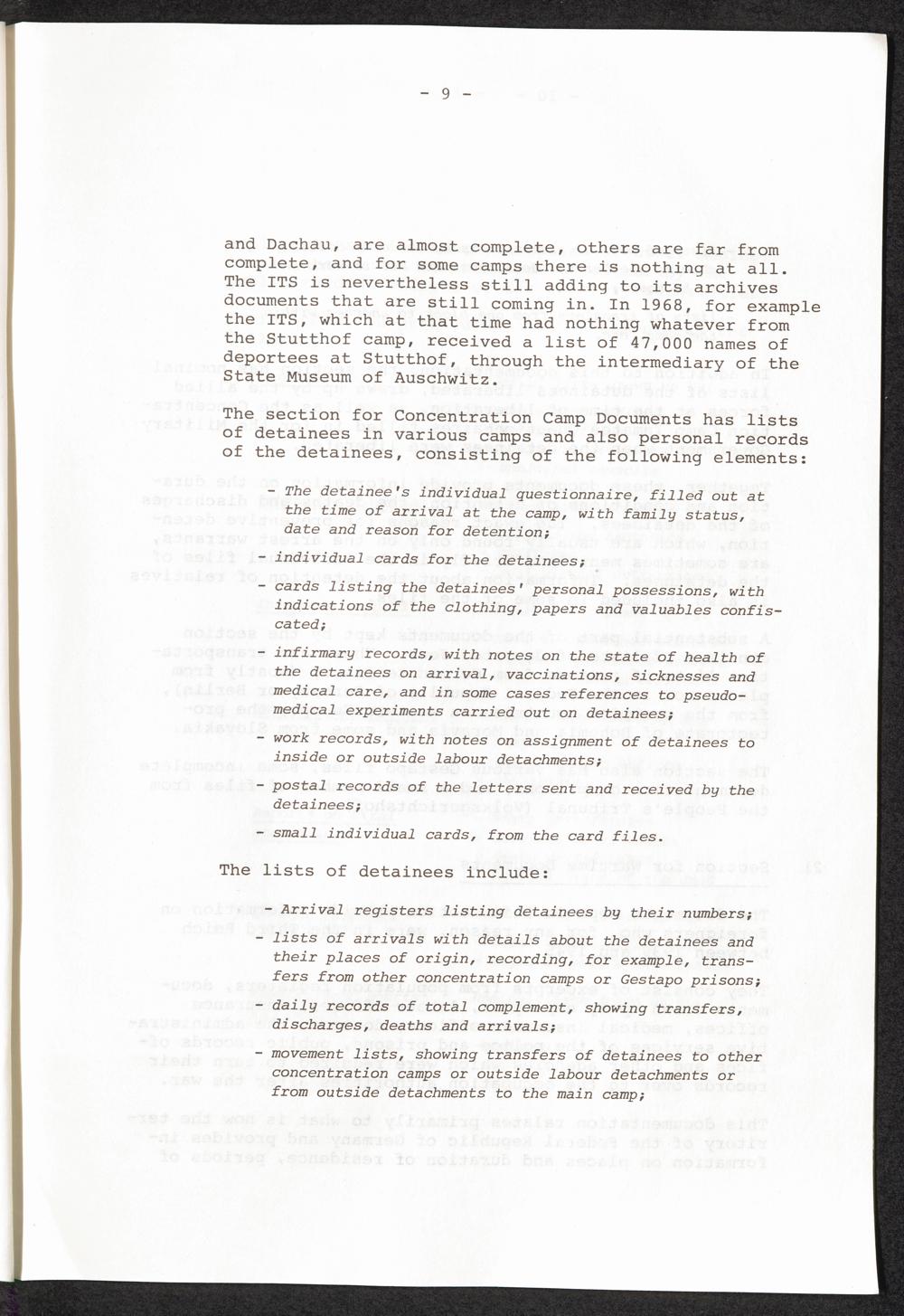 The International Tracing Service : Concentration camps records of service to survivors / Comité International de la Croix-Rouge