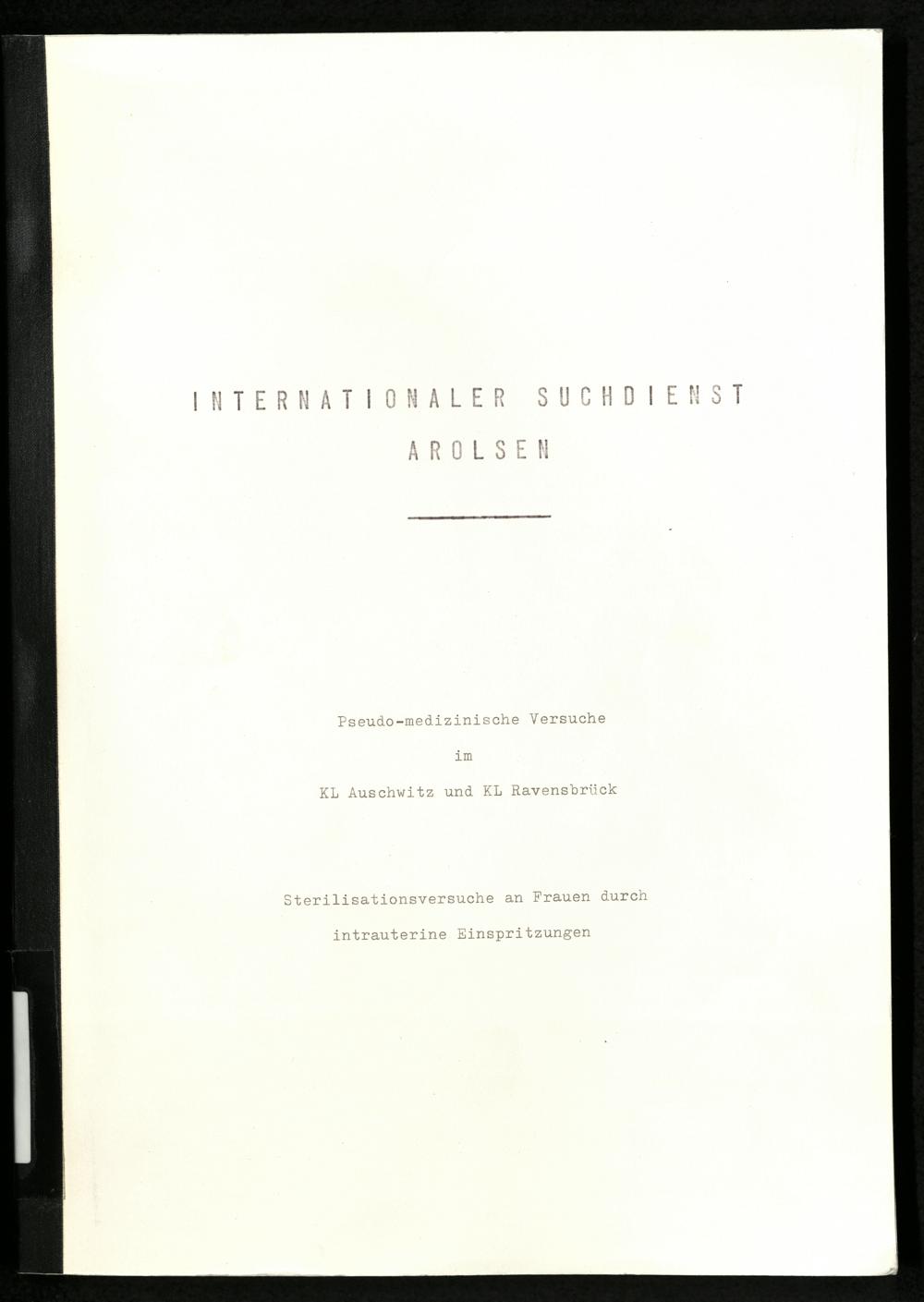 Pseudo-medizinische Versuche im KL Auschwitz und KL Ravensbrück : Sterilisationsversuche an Frauen durch intrauterine Einspritzungen / Internationaler Suchdienst