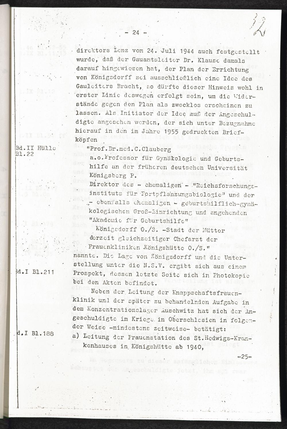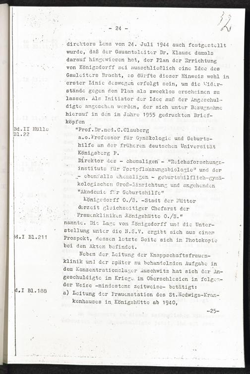 Pseudo-medizinische Versuche im KL Auschwitz und KL Ravensbrück Anlage I