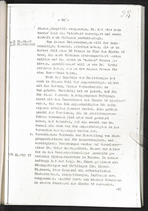 Pseudo-medizinische Versuche im KL Auschwitz und KL Ravensbrück Anlage I