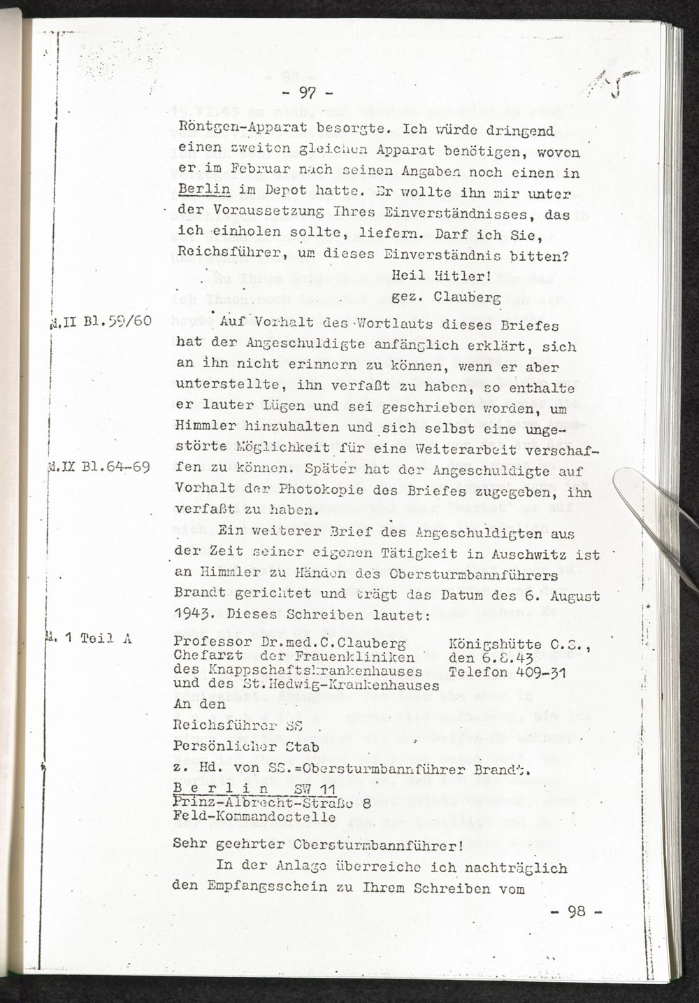 Pseudo-medizinische Versuche im KL Auschwitz und KL Ravensbrück Anlage I