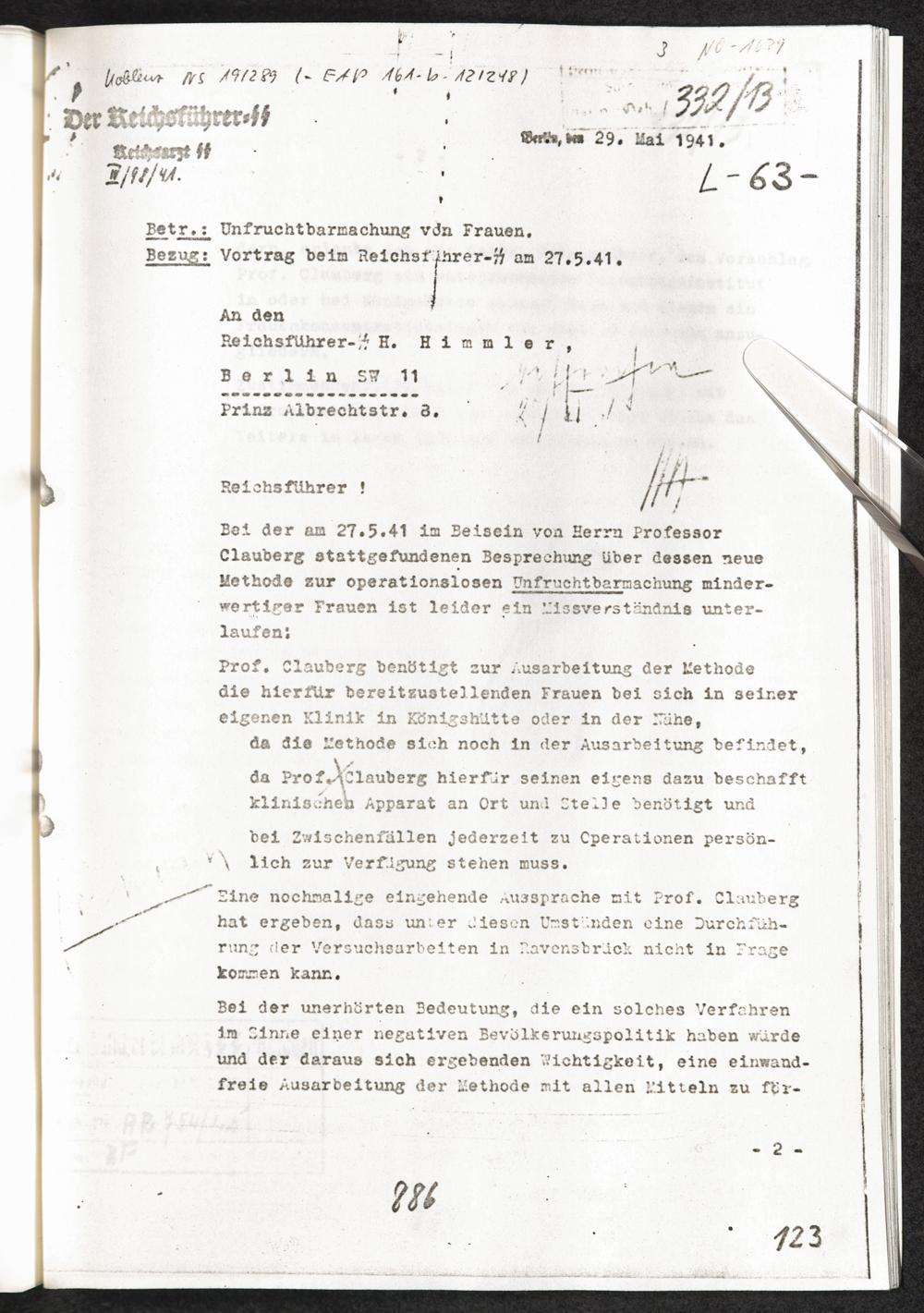 Pseudo-medizinische Versuche im KL Auschwitz und KL Ravensbrück : Sterilisationsversuche an Frauen durch intrauterine Einspritzungen / Internationaler Suchdienst