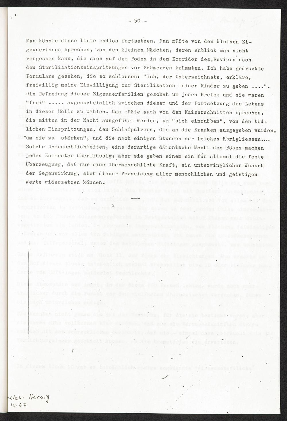 Pseudo-medizinische Versuche im KL Auschwitz : Studium der Entwicklung des Gebärmutterkrebses (Untersuchungen und operative Eingriffe an Krebsverdächtigen und Krebskranken) / Internationaler Suchdienst (ITS)