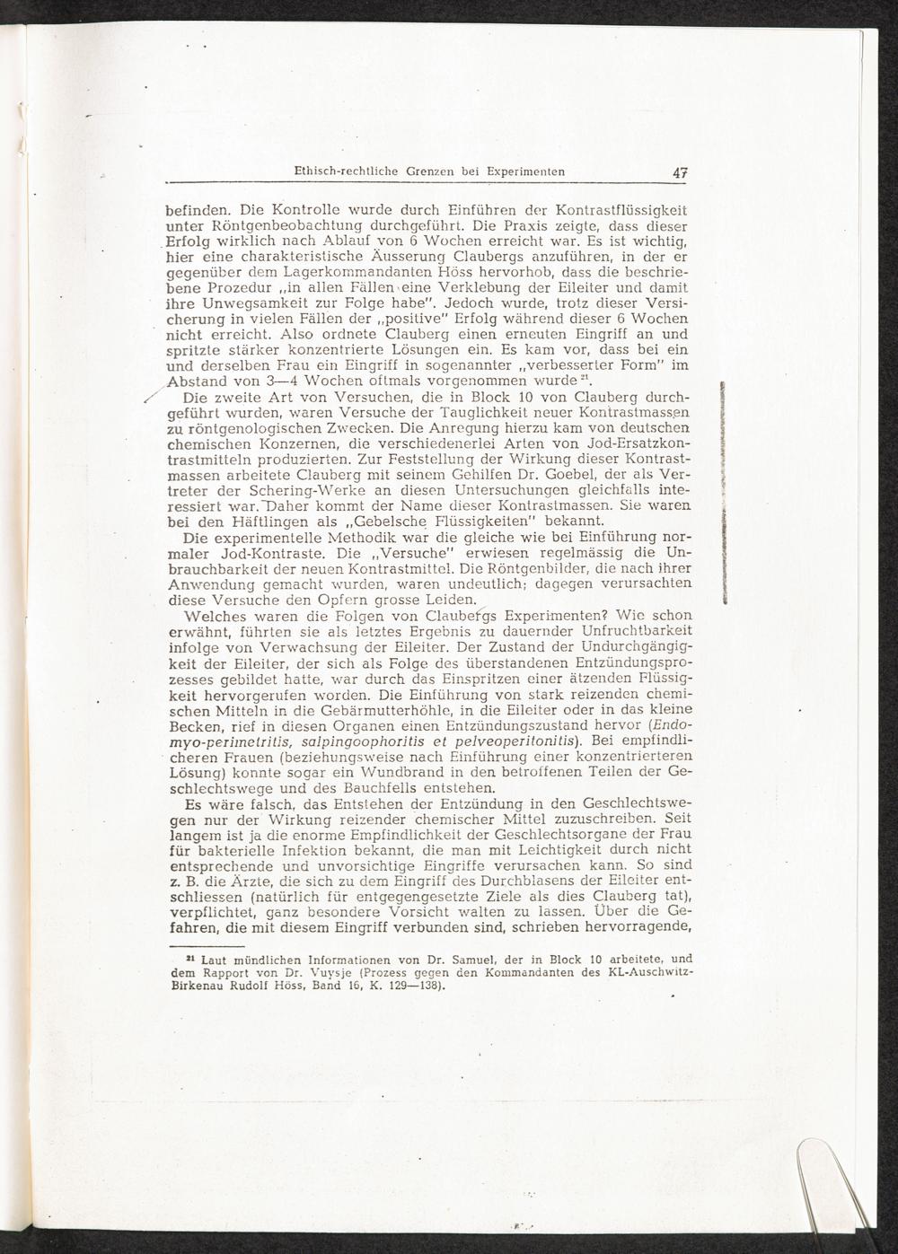 Pseudo-medizinische Versuche im KL Auschwitz : Prüfung von Kontrast-Substanzen für Röntgenaufnahmen der Gebärmutter / Internationaler Suchdienst