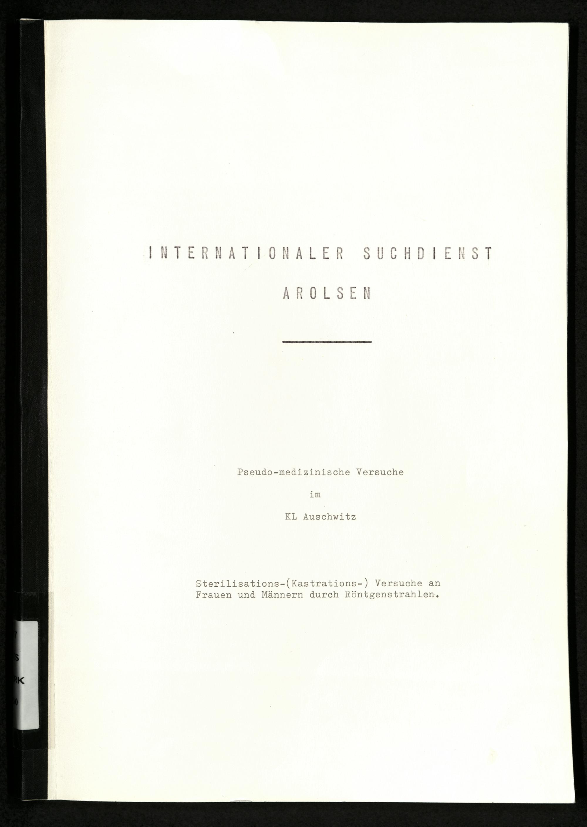 Pseudo-medizinische Versuche im KL Auschwitz : Sterilisations- (Kastrations-) Versuche an Frauen und Männern durch Röntgenstrahlen / Internationaler Suchdienst (ITS)