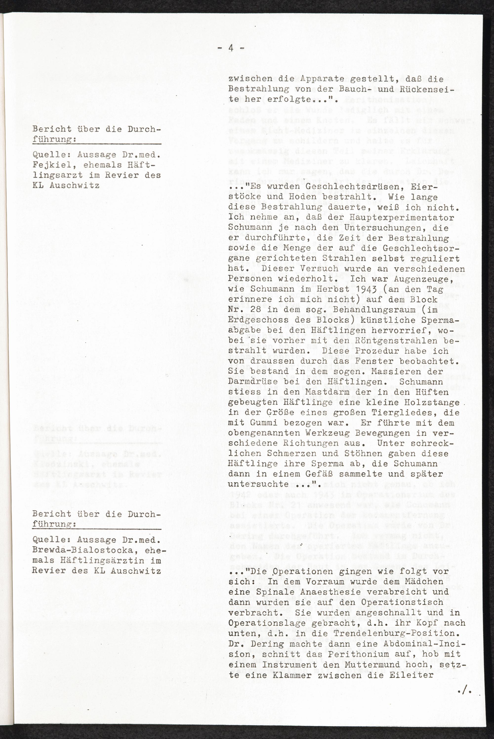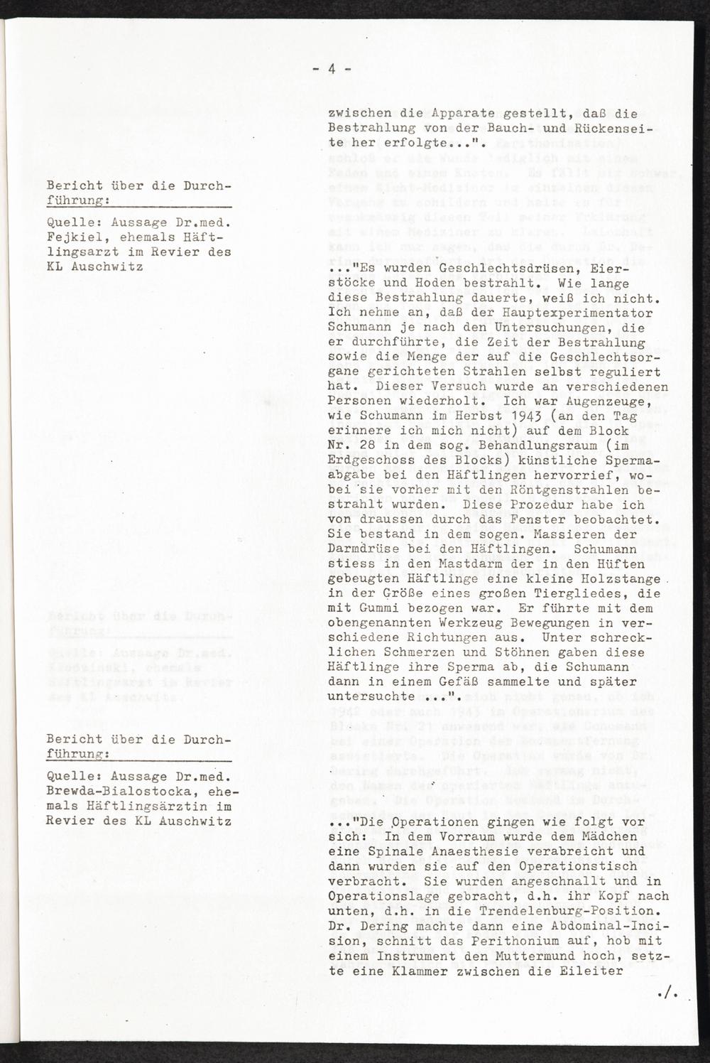 Pseudo-medizinische Versuche im KL Auschwitz Medizinische Menschenversuche: Sterilisations-(Kastrations-)VVersuche an Frauen und...