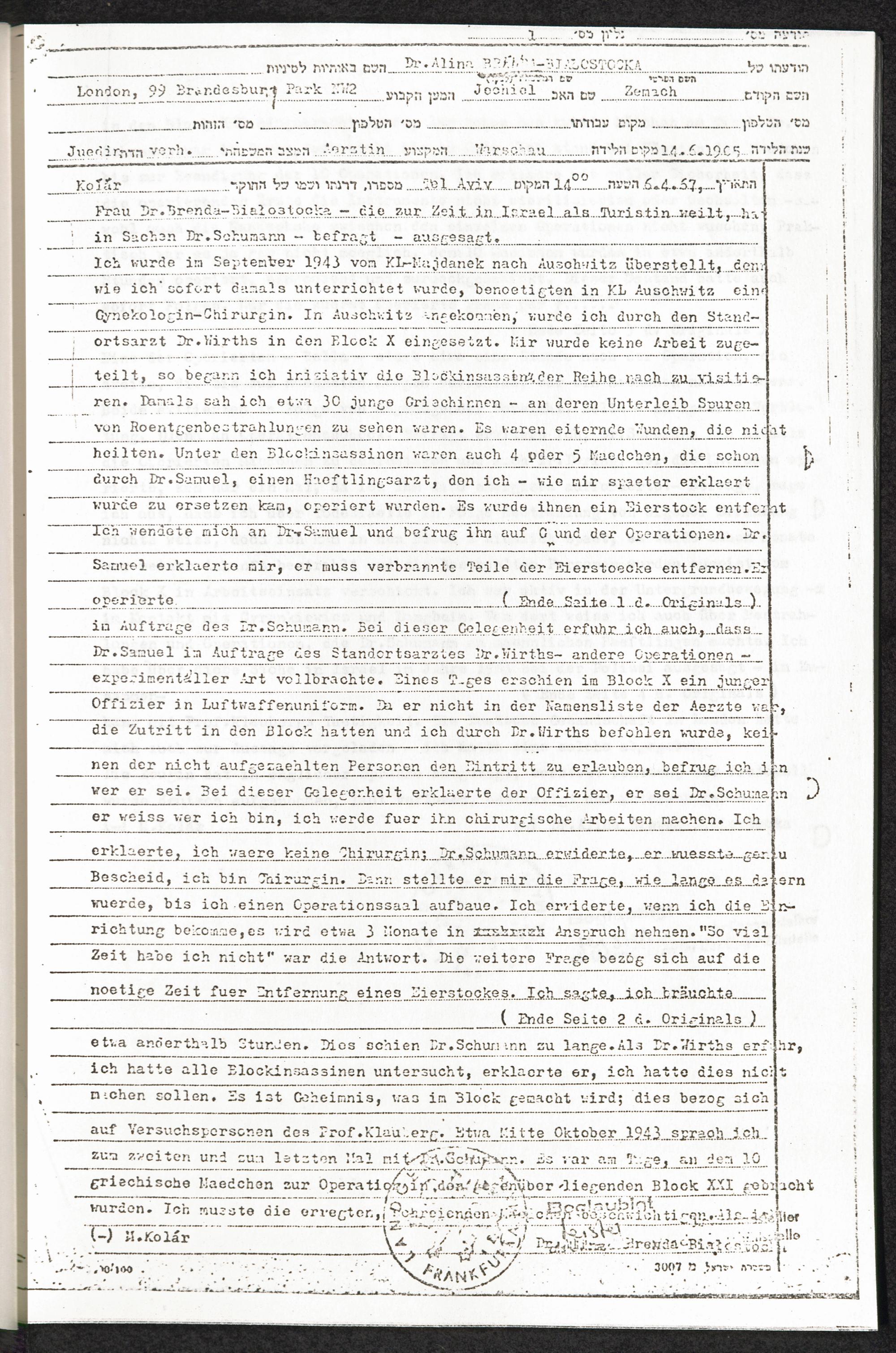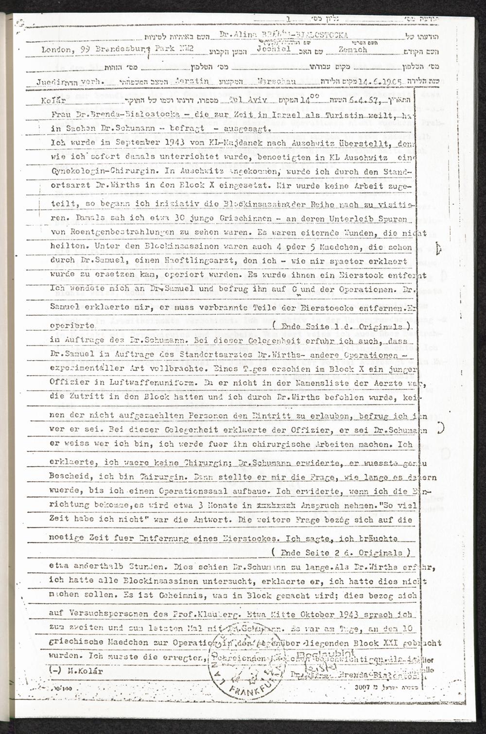 Pseudo-medizinische Versuche im KL Auschwitz : Sterilisations- (Kastrations-) Versuche an Frauen und Männern durch Röntgenstrahlen / Internationaler Suchdienst (ITS)