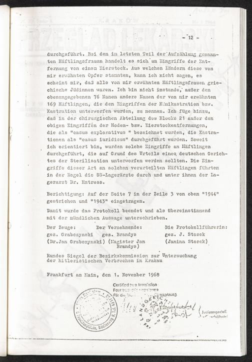 Pseudo-medizinische Versuche im KL Auschwitz : Sterilisations- (Kastrations-) Versuche an Frauen und Männern durch Röntgenstrahlen / Internationaler Suchdienst (ITS)