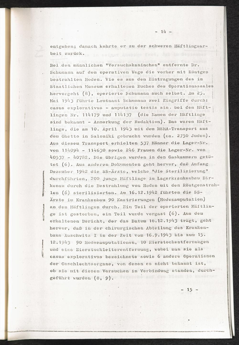 Pseudo-medizinische Versuche im KL Auschwitz [Przegląd Lekarski Nr. 1 1964 ... Beglaubigte Übersetzung aus dem Polnischen]