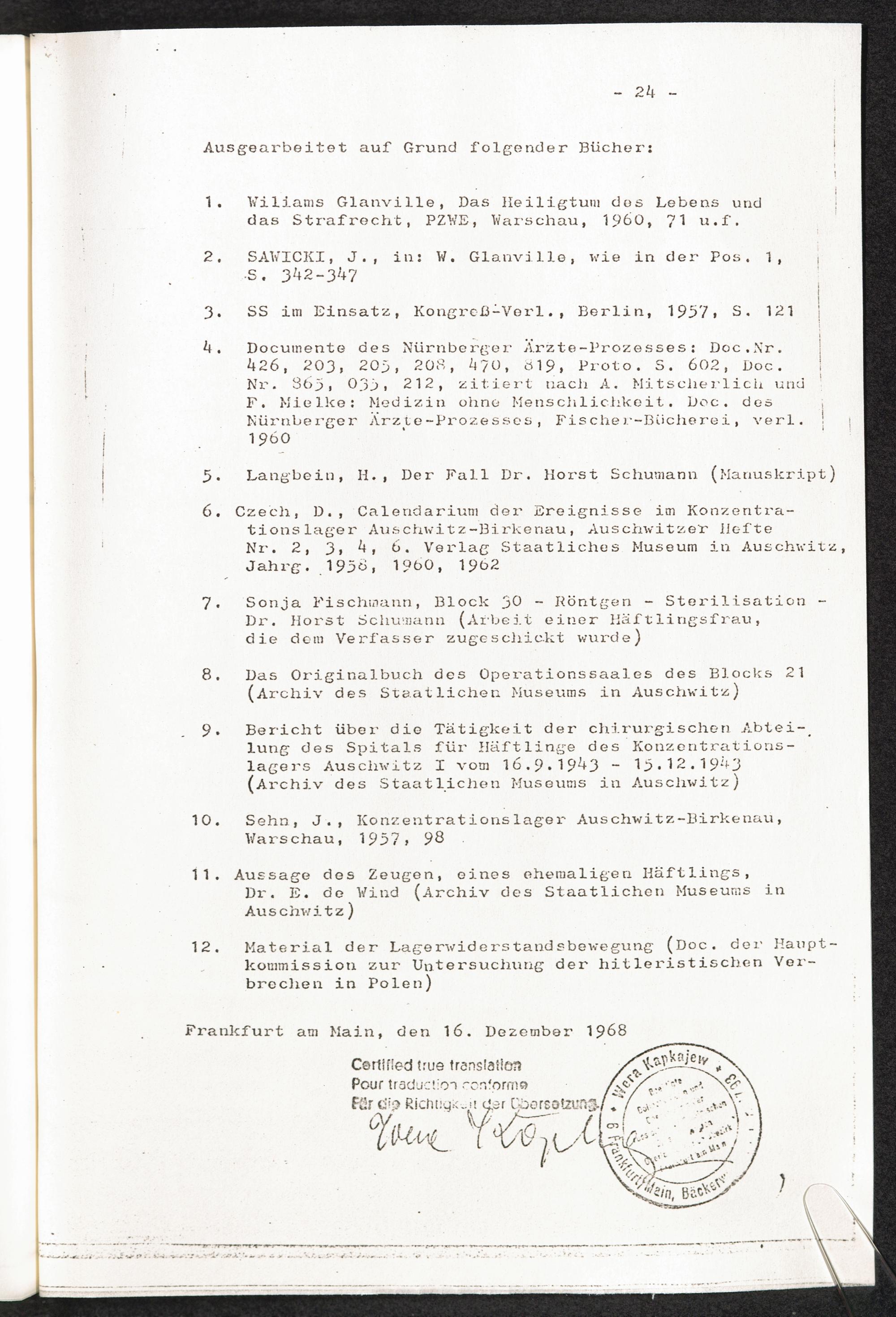 Pseudo-medizinische Versuche im KL Auschwitz [Przegląd Lekarski Nr. 1 1964 ... Beglaubigte Übersetzung aus dem Polnischen]