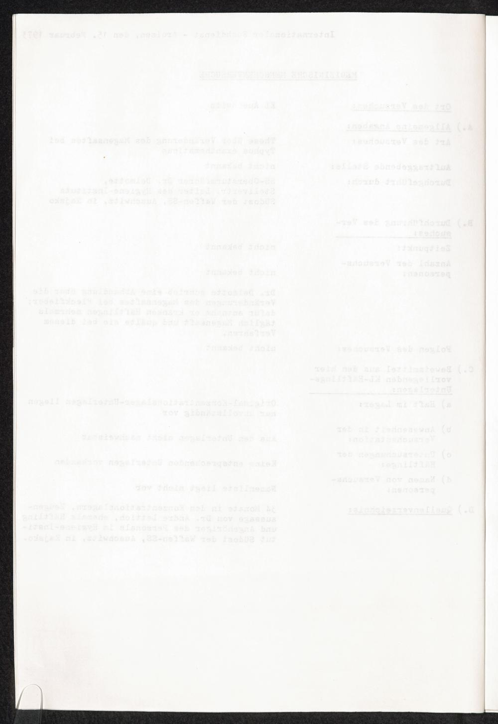 Pseudo-medizinische Versuche im KL Auschwitz : These über Veränderung des Magensaftes bei Typhus exanthematicus / Internationaler Suchdienst