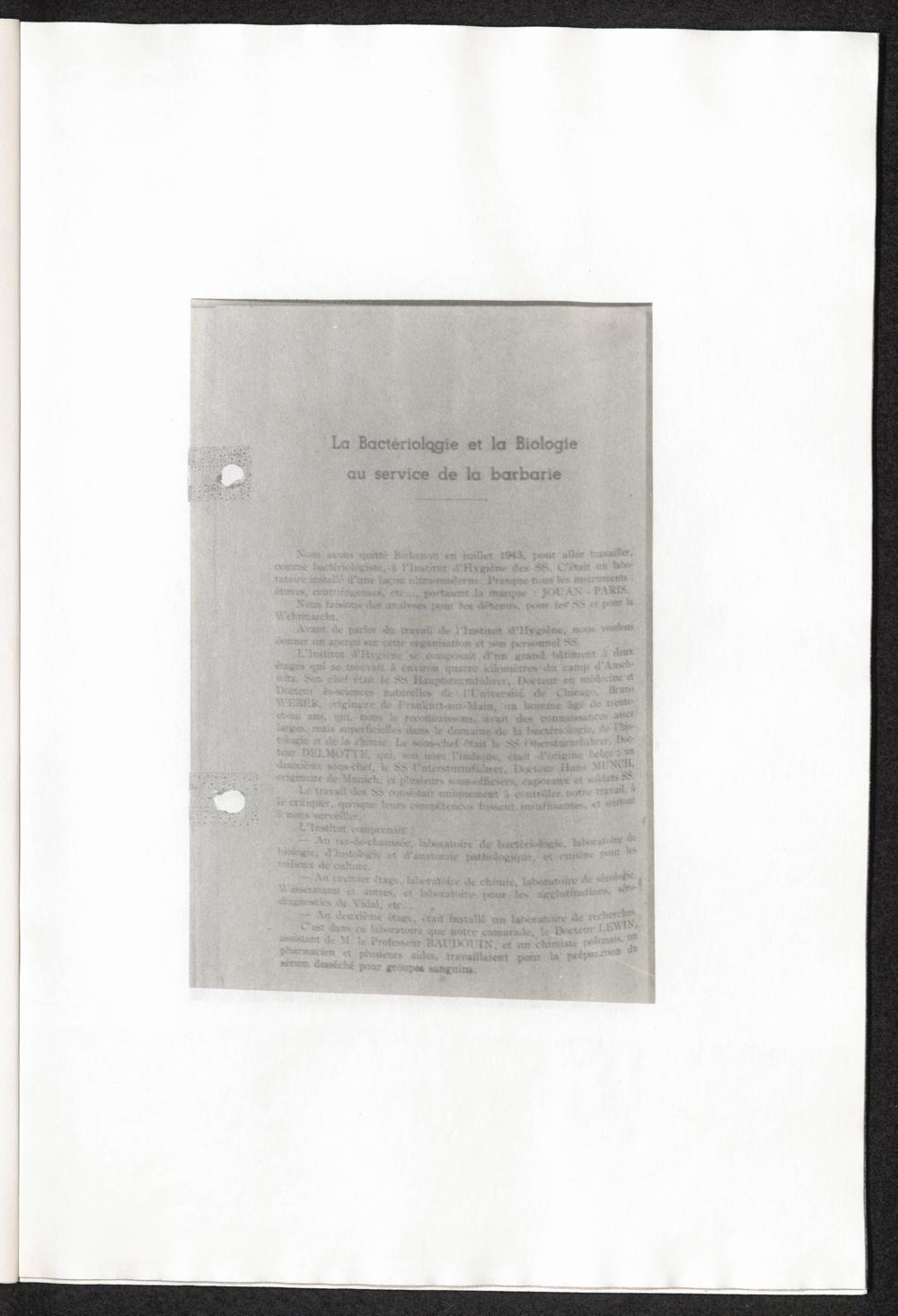 Pseudo-medizinische Versuche im KL Auschwitz : These über Veränderung des Magensaftes bei Typhus exanthematicus / Internationaler Suchdienst