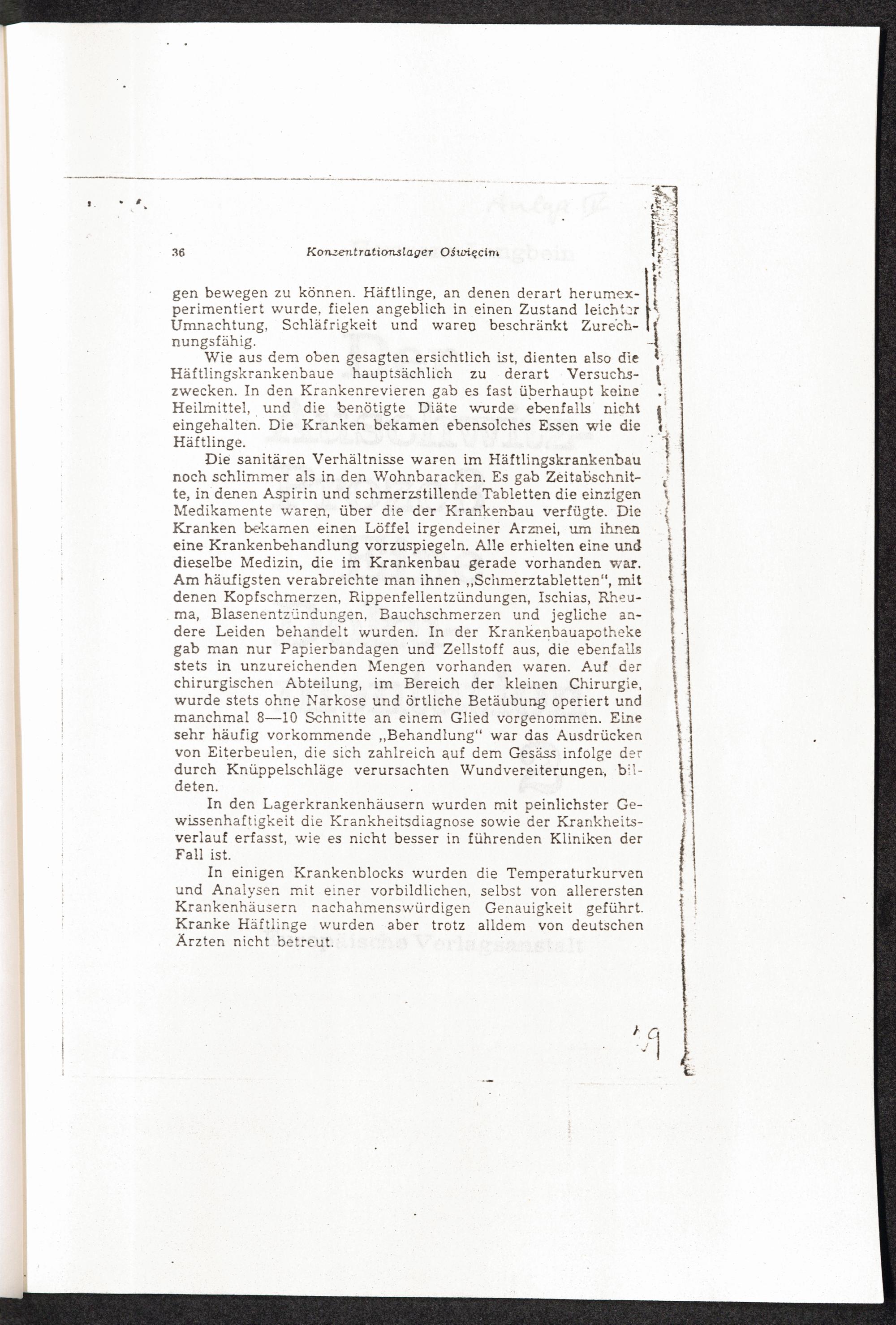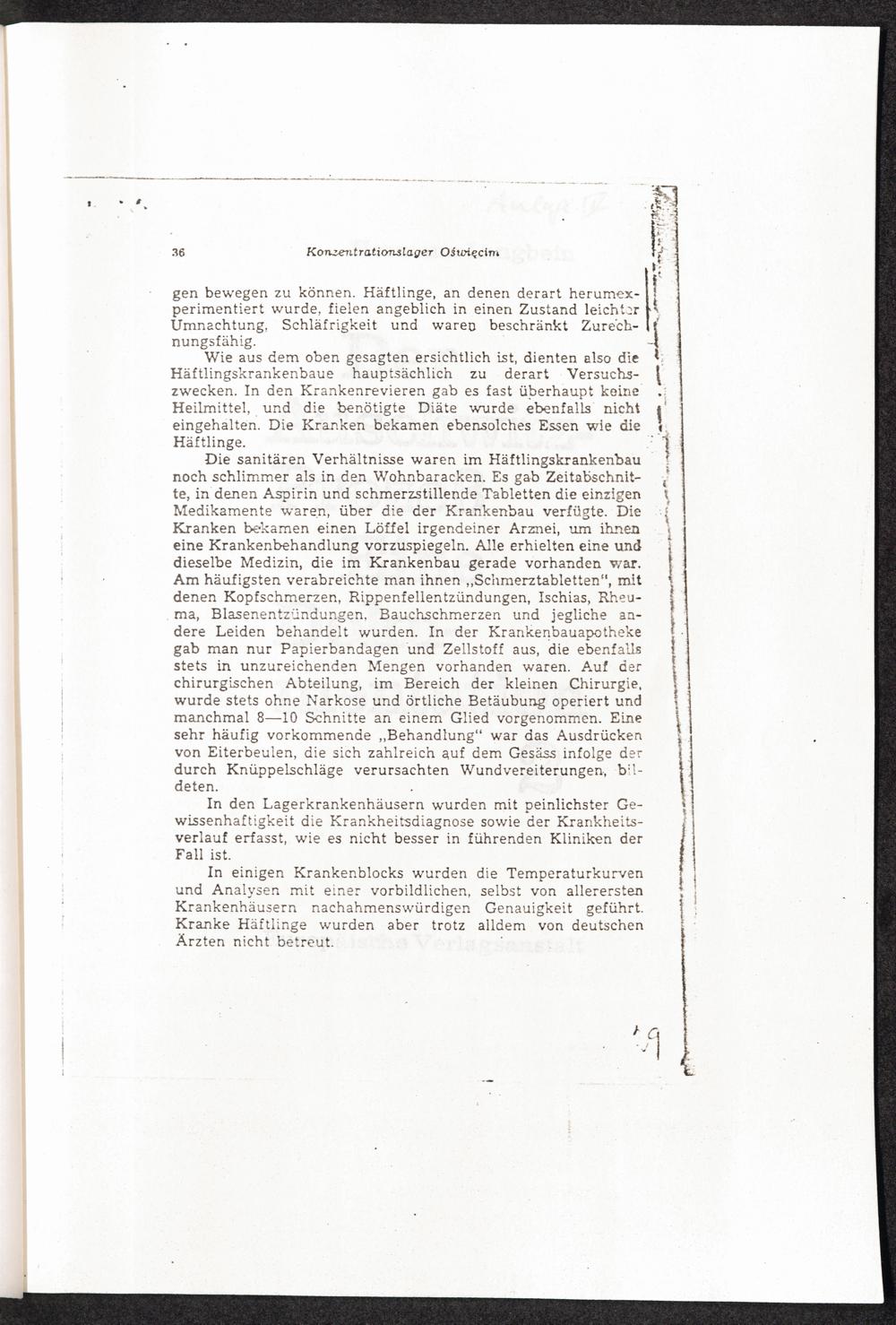 PDF  Anlage II: Konzentrationslager Oświęcim-Brzezinka (Auschwitz-Birkenau). Auf Grund von Dokumenten und Beweisquellen bearbeitet von Dr. Jan Sehn