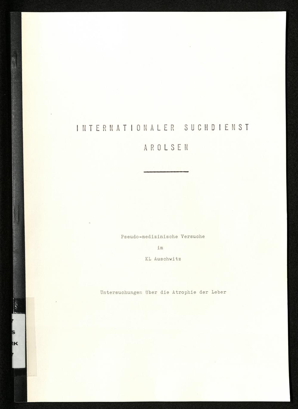 Pseudo-medizinische Versuche im KL Auschwitz : Untersuchungen über die Atrophie der Leber / Internationaler Suchdienst