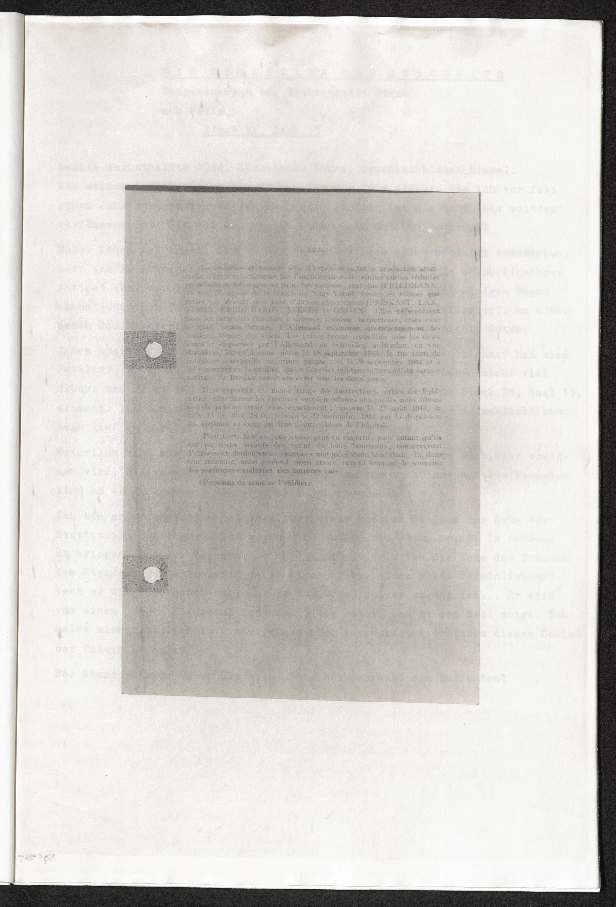 Pseudo-medizinische Versuche im KL Auschwitz : Versuche mit Arichin, um künstlich herbeigeführte Gelbsucht zu studieren / Internationaler Suchdienst