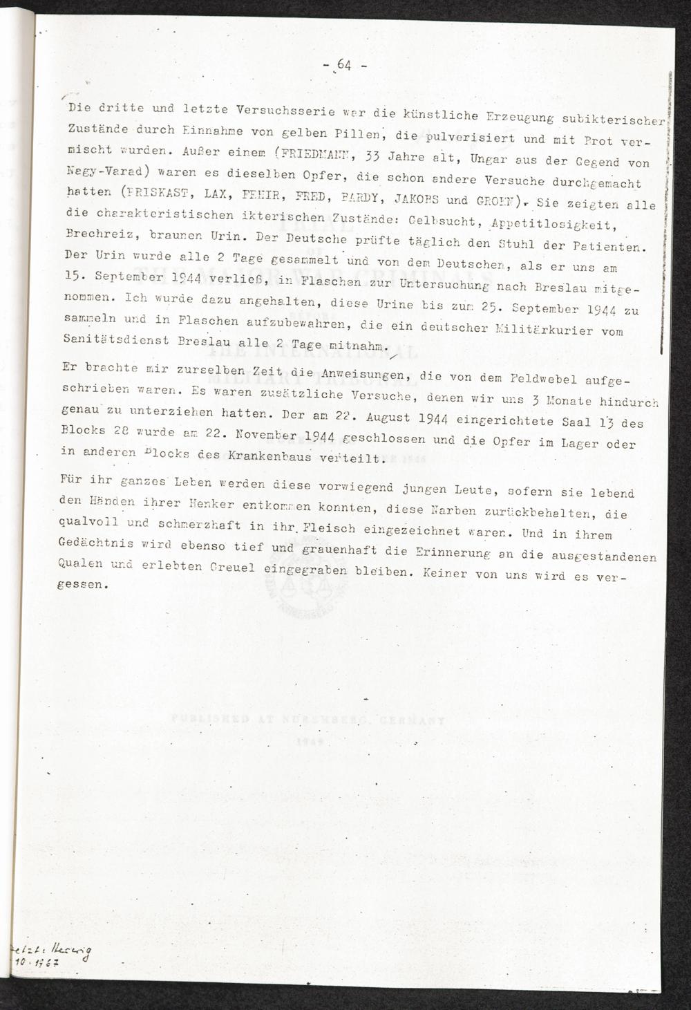 Pseudo-medizinische Versuche im KL Auschwitz : Versuche mit Arichin, um künstlich herbeigeführte Gelbsucht zu studieren / Internationaler Suchdienst