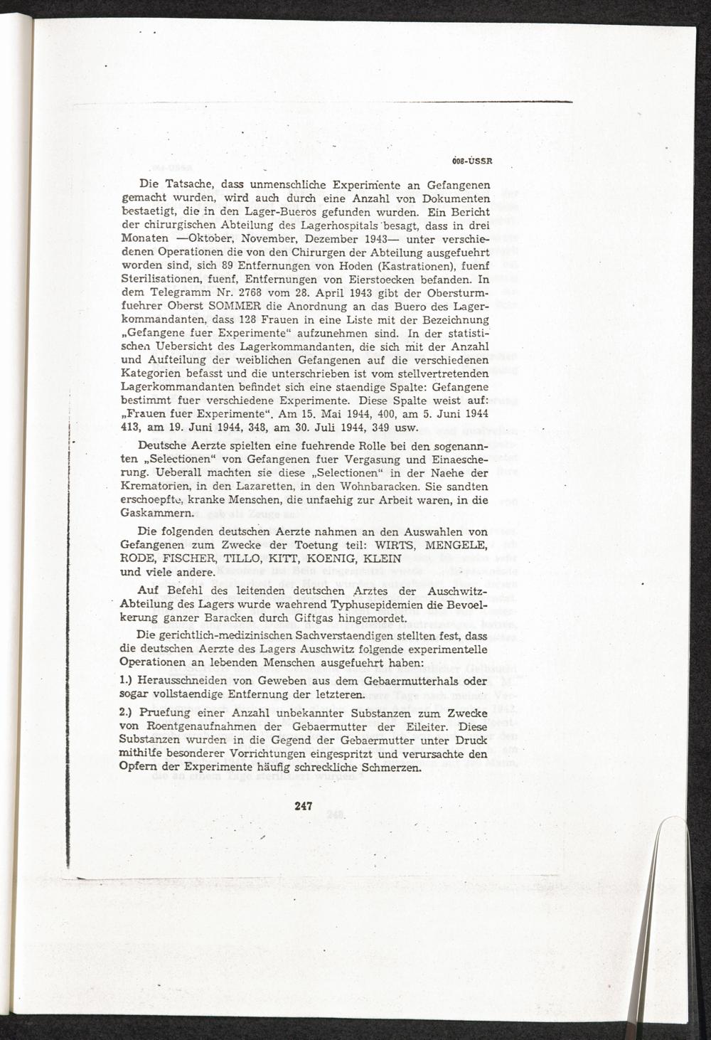 Pseudo-medizinische Versuche im KL Auschwitz : Versuche mit Arichin, um künstlich herbeigeführte Gelbsucht zu studieren / Internationaler Suchdienst