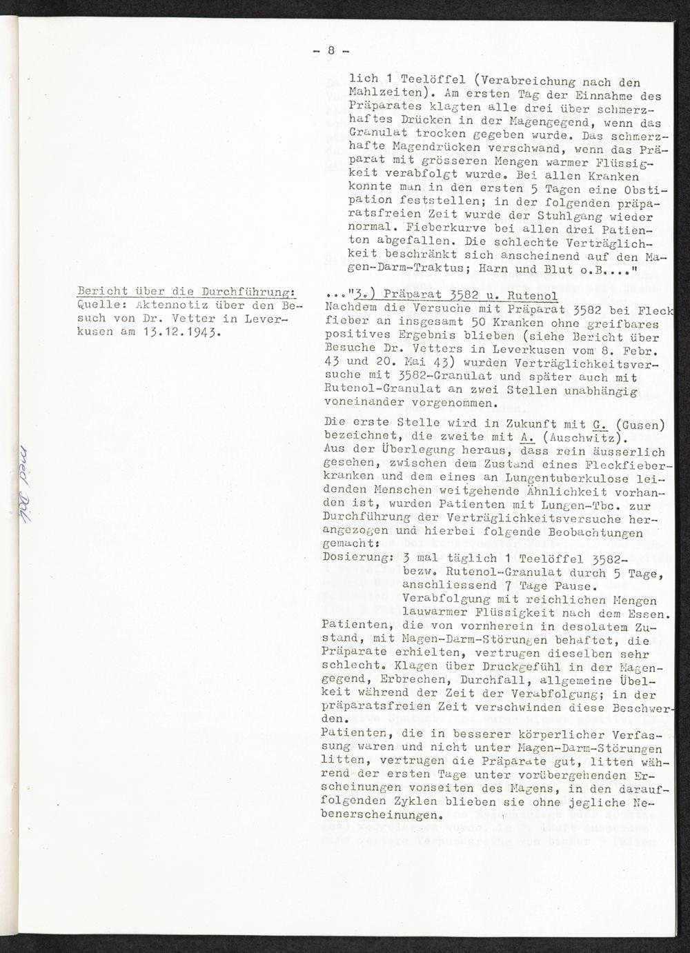 Pseudo-medizinische Versuche im KL Auschwitz Medizinische Menschenversuche: Pharmakologische Versuche bei Fleckfieber, Pneumonie...