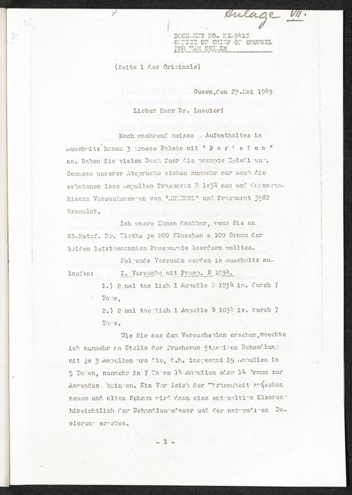 Pseudo-medizinische Versuche im KL Auschwitz : Pharmakologische Versuche / Internationaler Suchdienst