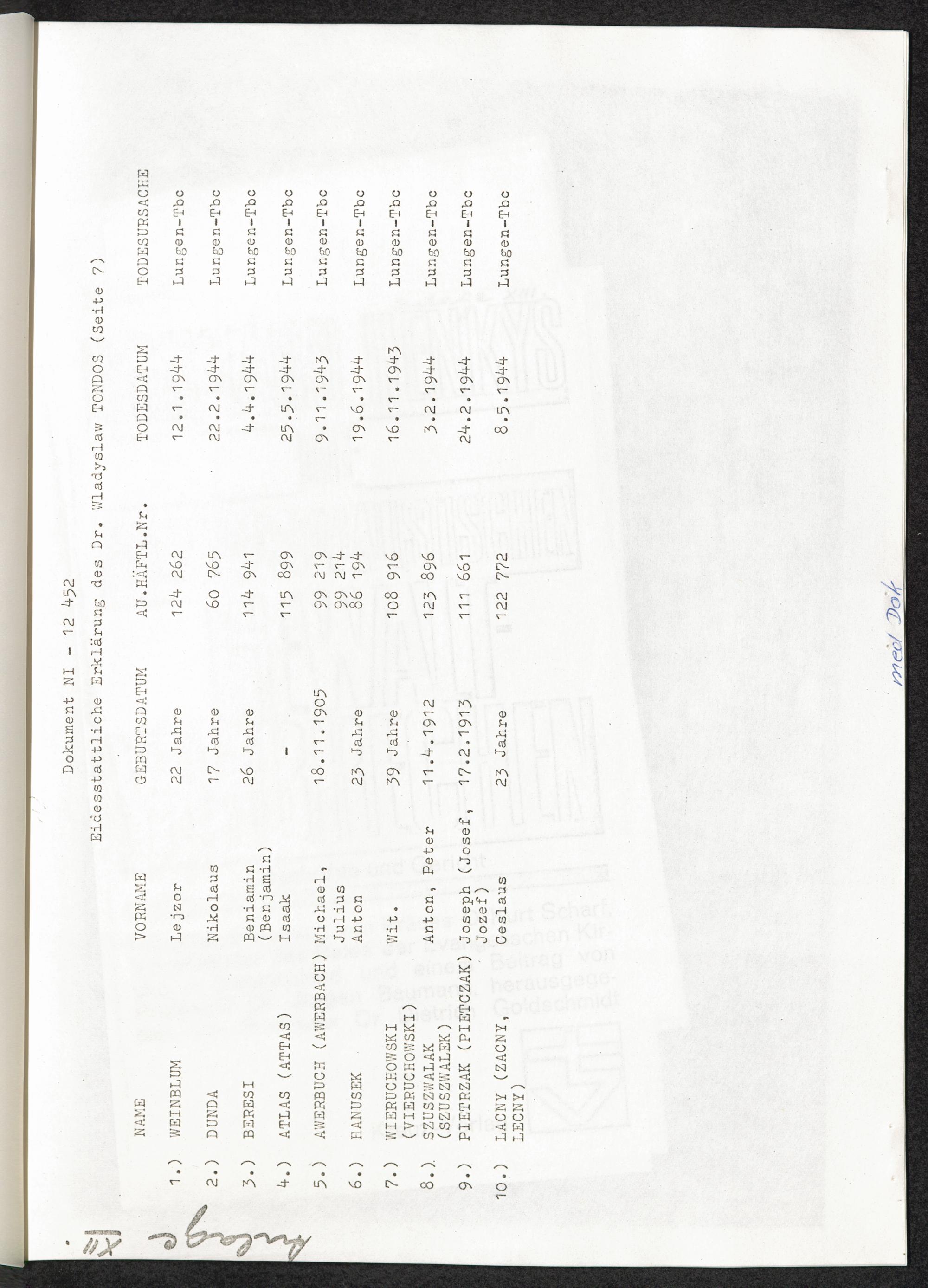 Bitte beachten Sie, dass dieses Portal über NS-Verfolgte sensible Daten zu identifizierten oder identifizierbaren Personen enthält. Dazu können Religionszugehörigkeit, Herkunft, Gesundheitszustand, sexuelle Orientierung, Weltanschauung, Mitgliedschaft in Gewerkschaften und Parteien oder auch Einträge in Strafregistern gehören.