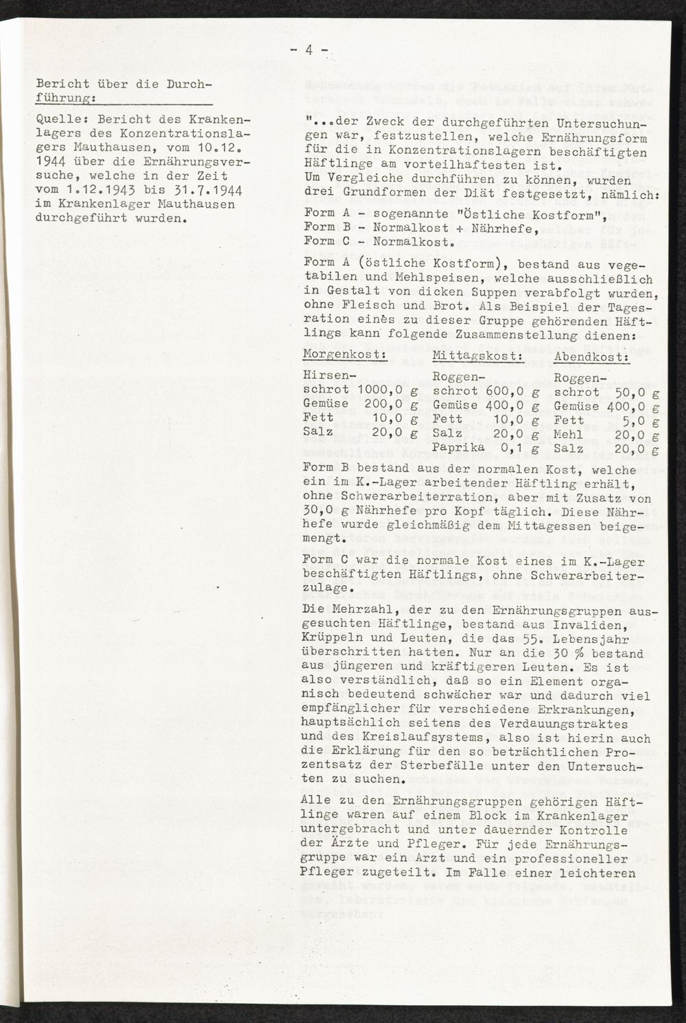 Pseudo-medizinische Versuche im KL Mauthausen Medizinische Menschenversuche: Ernährungsversuche