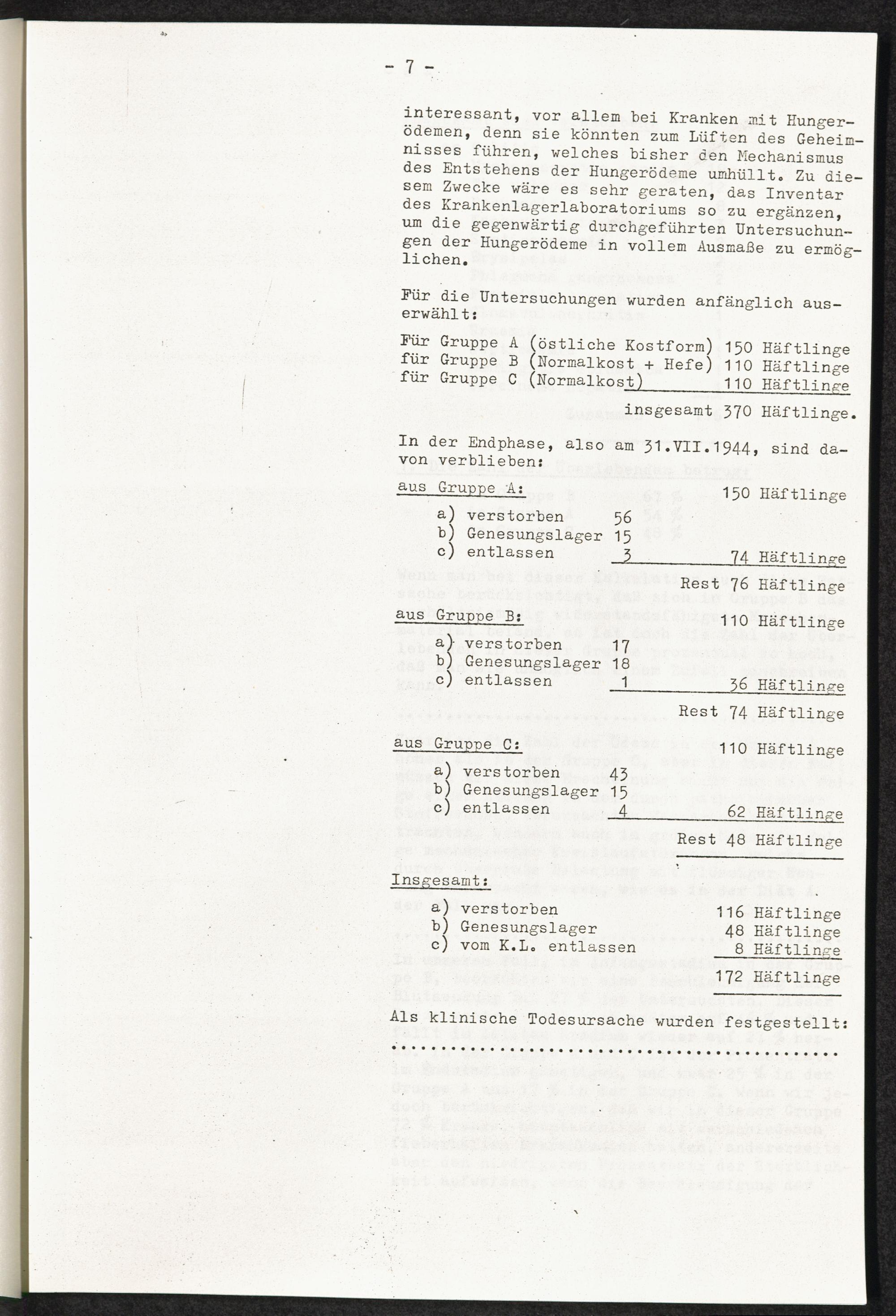 Pseudo-medizinische Versuche im KL Mauthausen : Ernährungsversuche / Internationaler Suchdienst