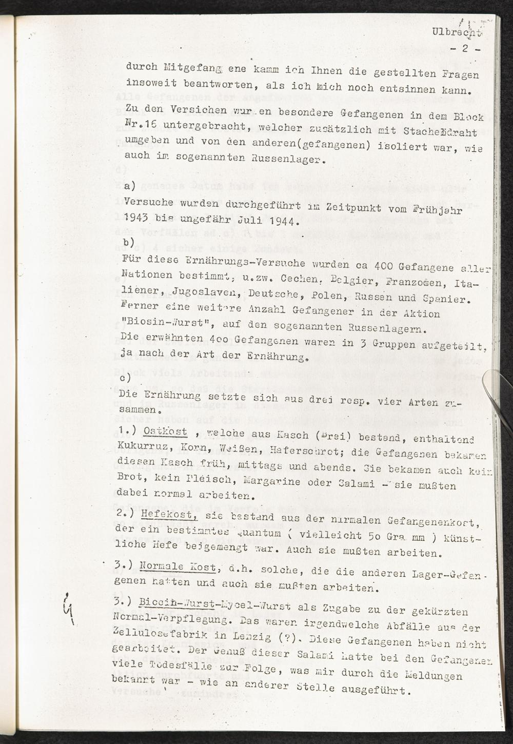 Pseudo-medizinische Versuche im KL Mauthausen : Ernährungsversuche / Internationaler Suchdienst