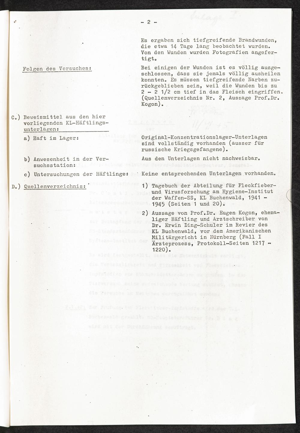 Pseudo-medizinische Versuche im KL Buchenwald : Phosphor-Kautschuk-Brandbomben-Versuch / Internationaler Suchdienst