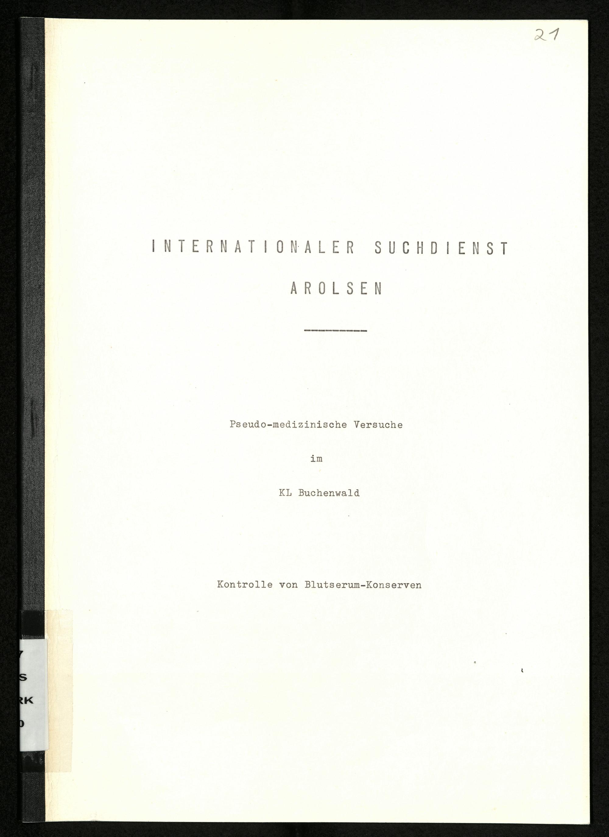 Pseudo-medizinische Versuche im KL Buchenwald : Kontrolle von Blutserum-Konserven / Internationaler Suchdienst