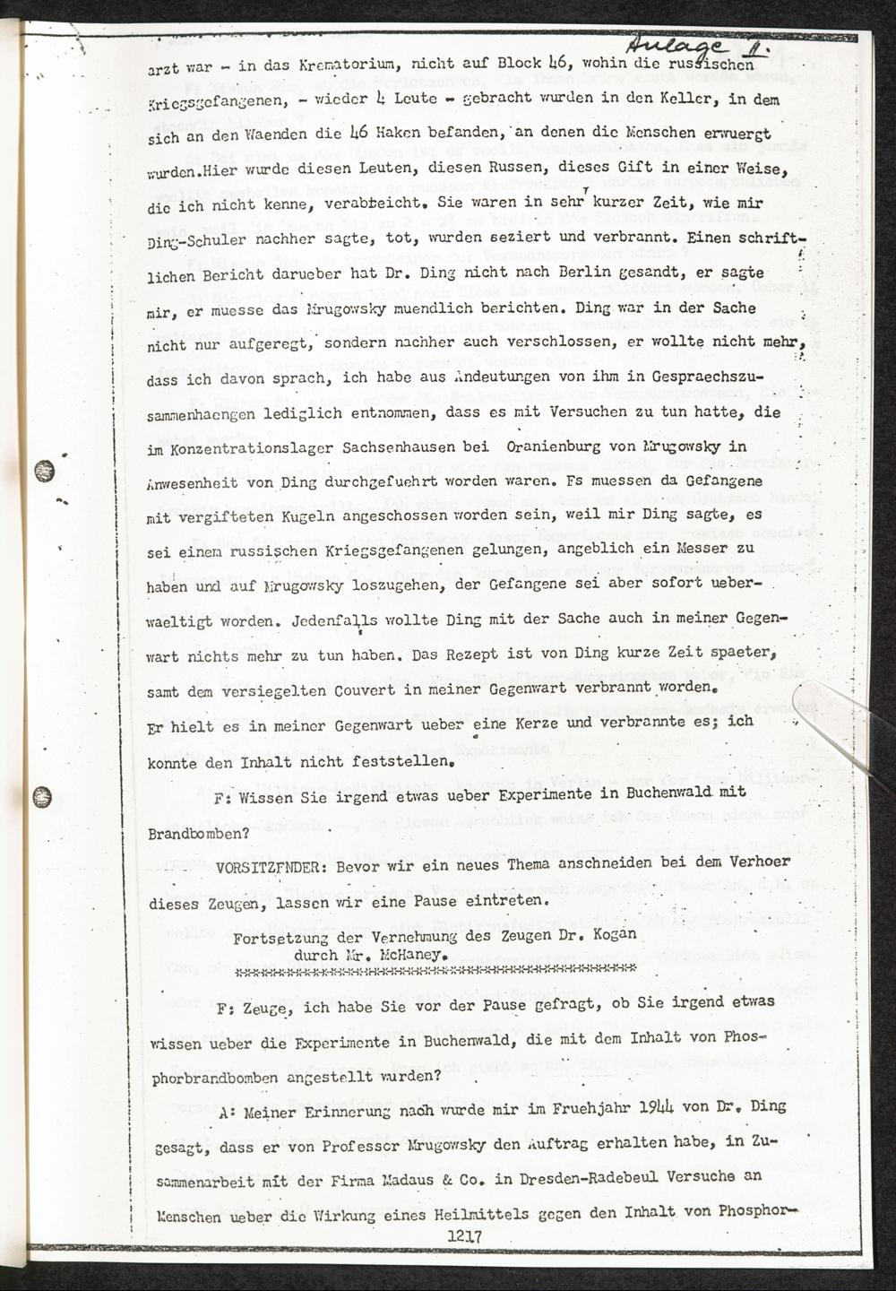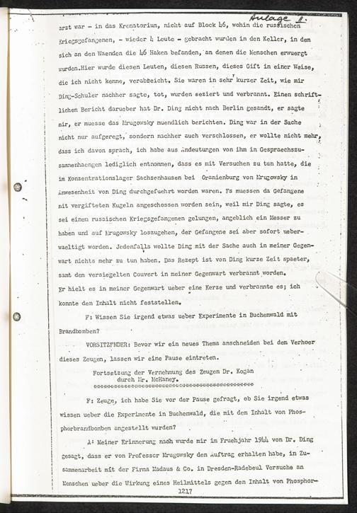 Pseudo-medizinische Versuche im KL Buchenwald : Kontrolle von Blutserum-Konserven / Internationaler Suchdienst
