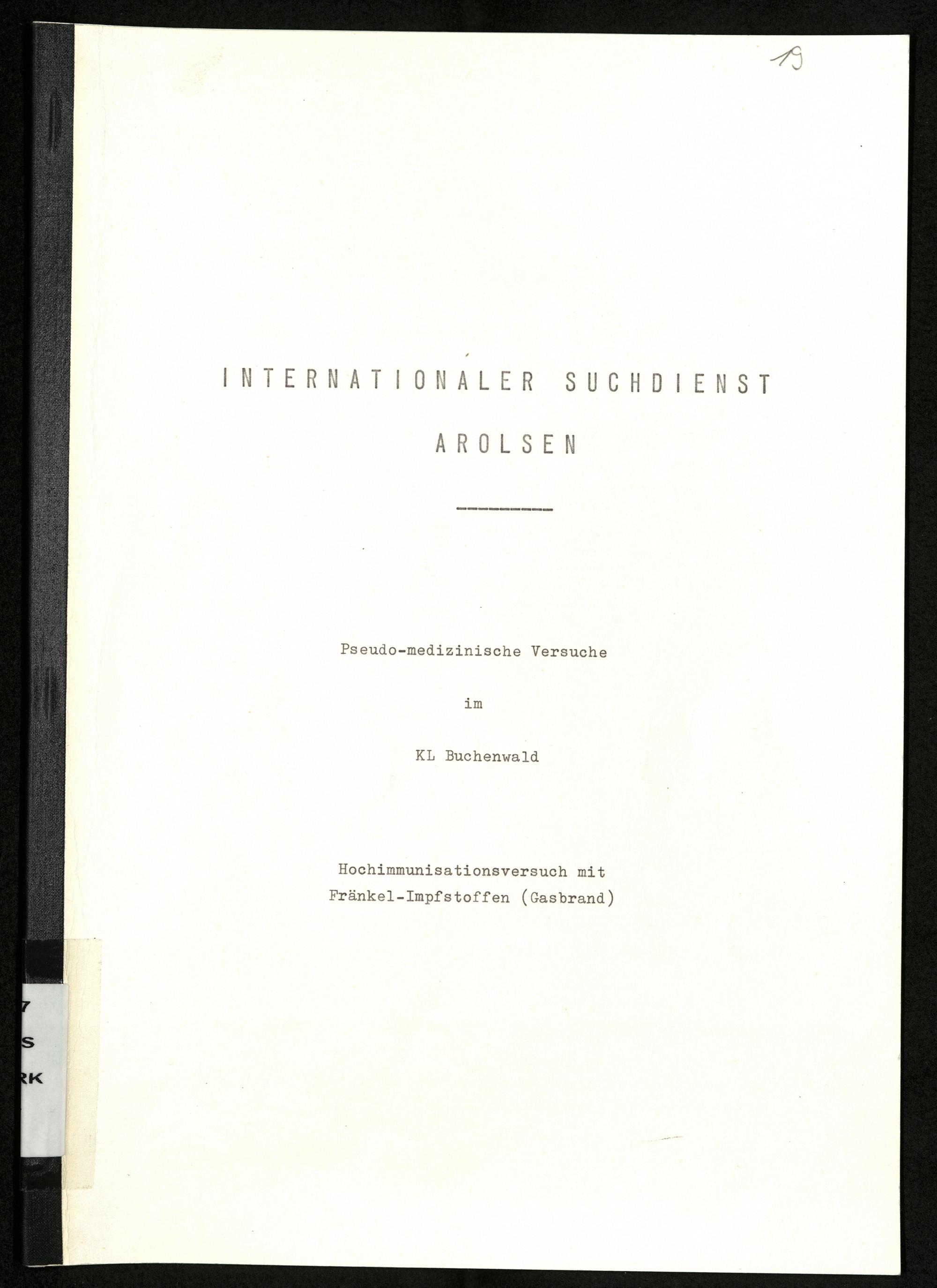 Pseudo-medizinische Versuche im KL Buchenwald : Hochimmunisationsversuch mit Fränkel-Impfstoffen (Gasbrand) / Internationaler Suchdienst (ITS)