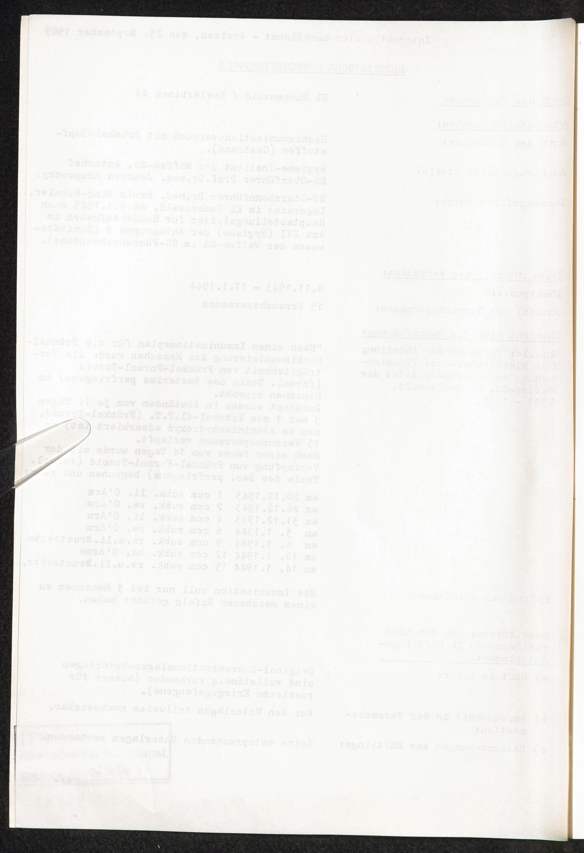 Pseudo-medizinische Versuche im KL Buchenwald : Hochimmunisationsversuch mit Fränkel-Impfstoffen (Gasbrand) / Internationaler Suchdienst (ITS)