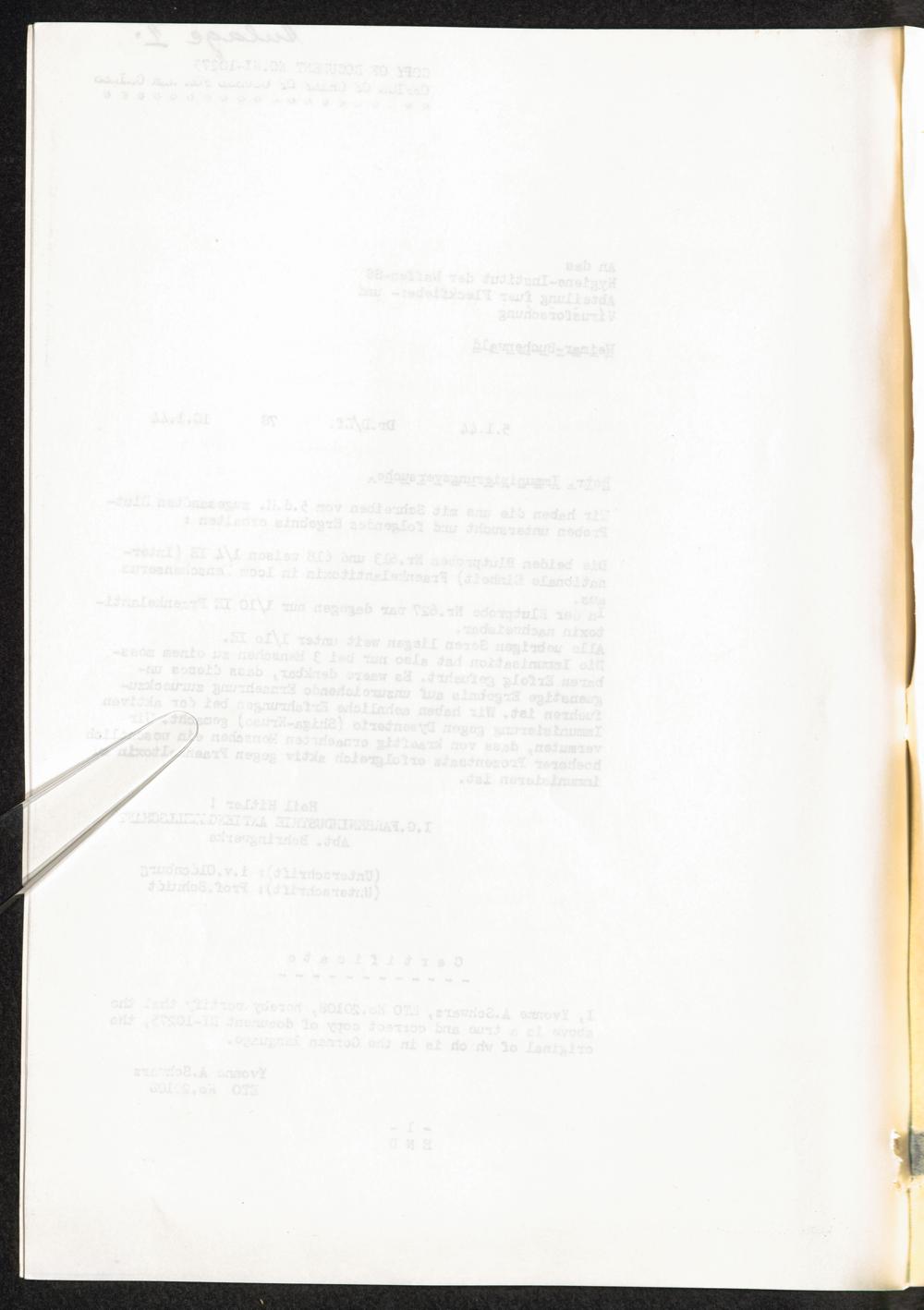 Pseudo-medizinische Versuche im KL Buchenwald : Hochimmunisationsversuch mit Fränkel-Impfstoffen (Gasbrand) / Internationaler Suchdienst (ITS)
