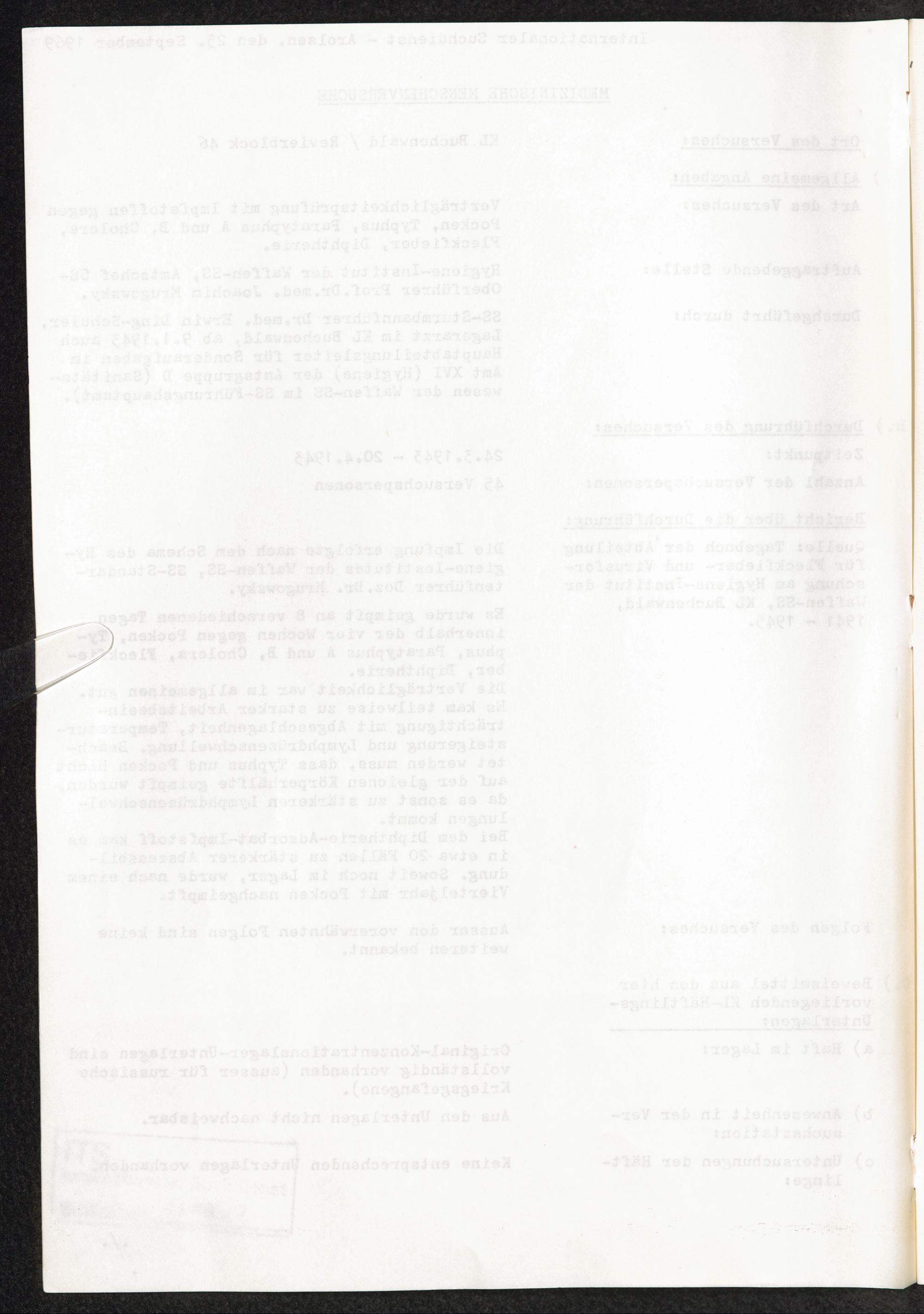 Pseudo-medizinische Versuche im KL Buchenwald : Verträglichkeitsprüfung mit Impfstoffen gegen Pocken, Typhus, Paratyphus A und B, Cholera, Fleckfieber, Diphterie / Internationaler Suchdienst