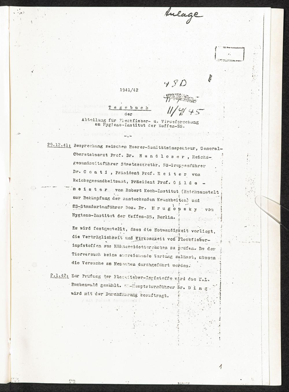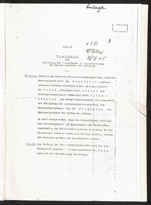 Pseudo-medizinische Versuche im KL Buchenwald : Verträglichkeitsprüfung mit Impfstoffen gegen Pocken, Typhus, Paratyphus A und B, Cholera, Fleckfieber, Diphterie / Internationaler Suchdienst