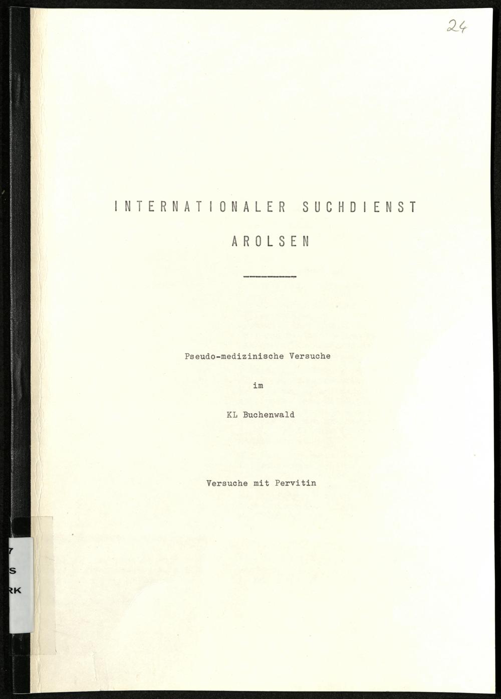 Pseudo-medizinische Versuche im KL Buchenwald : Versuche mit Pervitin / Internationaler Suchdienst
