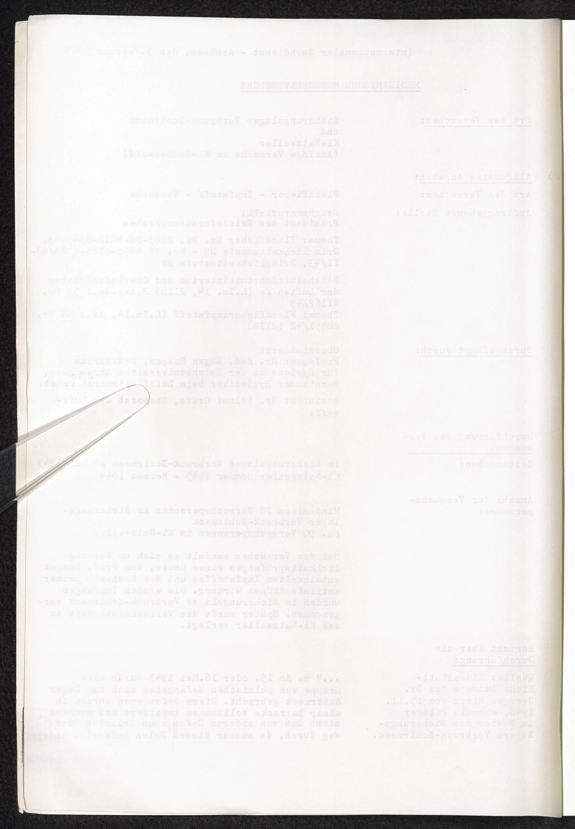Pseudo-medizinische Versuche im Sicherungslager Vorbruck-Schirmeck und KL Natzweiler : Fleckfieber - Impfstoff - Versuche / Internationaler Suchdienst
