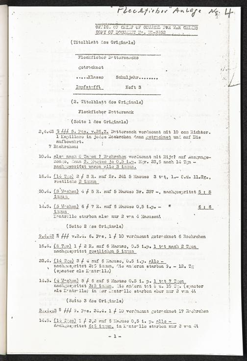 Pseudo-medizinische Versuche im Sicherungslager Vorbruck-Schirmeck und KL Natzwe... "Fleckfieber" Anlage Nr. 4