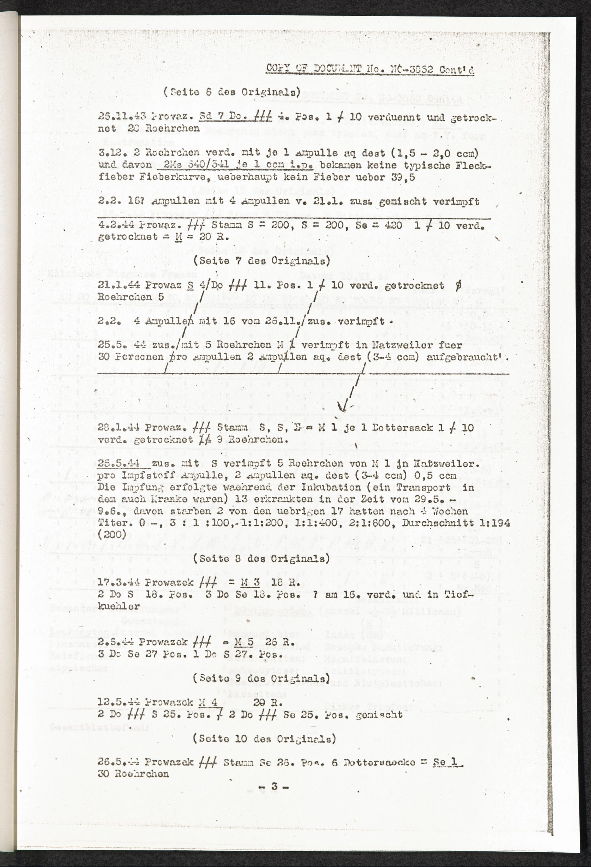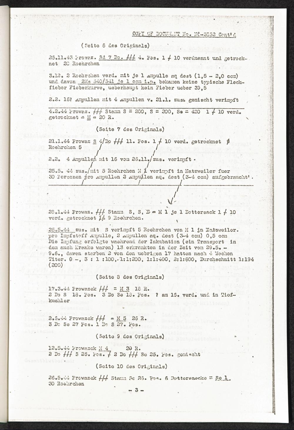 Pseudo-medizinische Versuche im Sicherungslager Vorbruck-Schirmeck und KL Natzwe... "Fleckfieber" Anlage Nr. 4